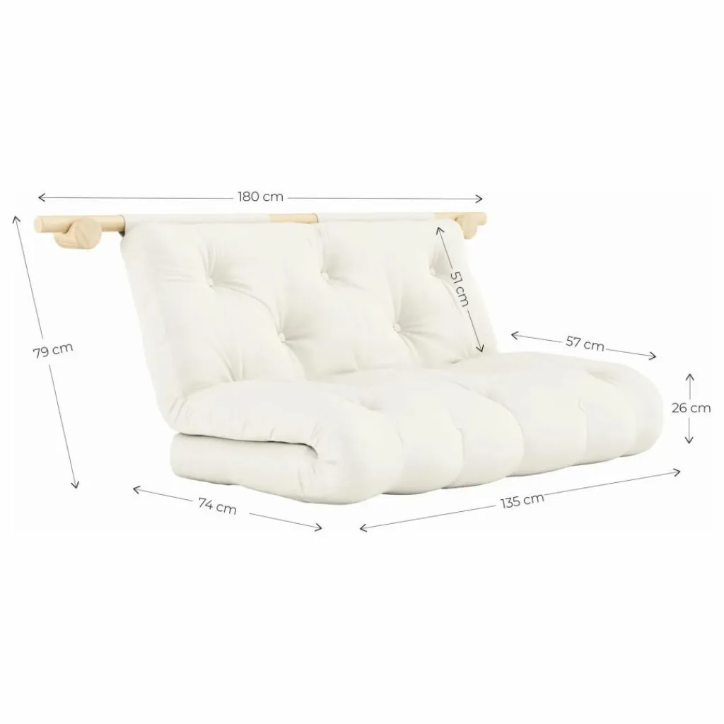 - Tous nos futons sont fabriqués à la main, il se peut donc que vous constatiez de petites différences de taille et de poids. Les nœuds dans nos meubles en bois naturel sont des caractéristiques individuelles et le charisme de chaque meuble. Il n’y en a pas deux qui se ressemblent. Vous pouvez vous attendre à ce que les surfaces en bois naturel changent au fil du temps lorsqu’elles sont exposées en permanence au climat, à la lumière du soleil et aux fluctuations de l’humidité.