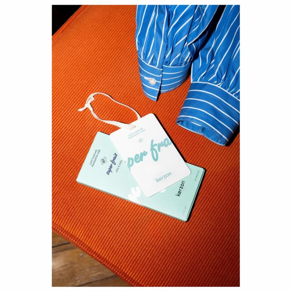- Gorgée de parfum, notre carte parfumée Super Frais enveloppe votre quotidien d’une signature olfactive unique. Suspendue dans votre dressing, glissée dans vos tiroirs ou votre sac, elle diffuse progressivement son sillage envoûtant et prolonge le plaisir de vos fragrances préférées pendant plusieurs semaines.