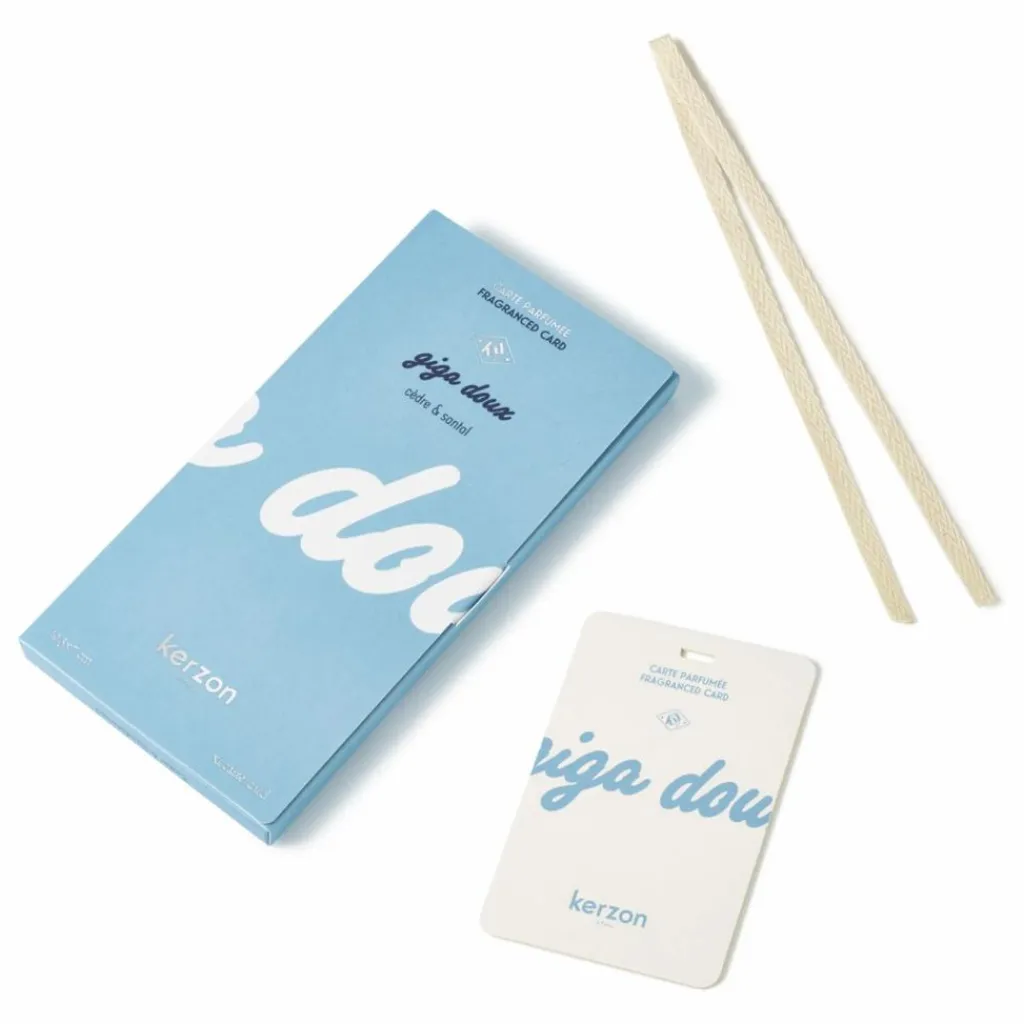 - Gorgée de parfum, notre carte parfumée Giga Doux enveloppe votre quotidien d’une signature olfactive unique. Suspendue dans votre dressing, glissée dans vos tiroirs ou votre sac, elle diffuse progressivement son sillage envoûtant et prolonge le plaisir de votre fragrance préférée pendant plusieurs semaines.