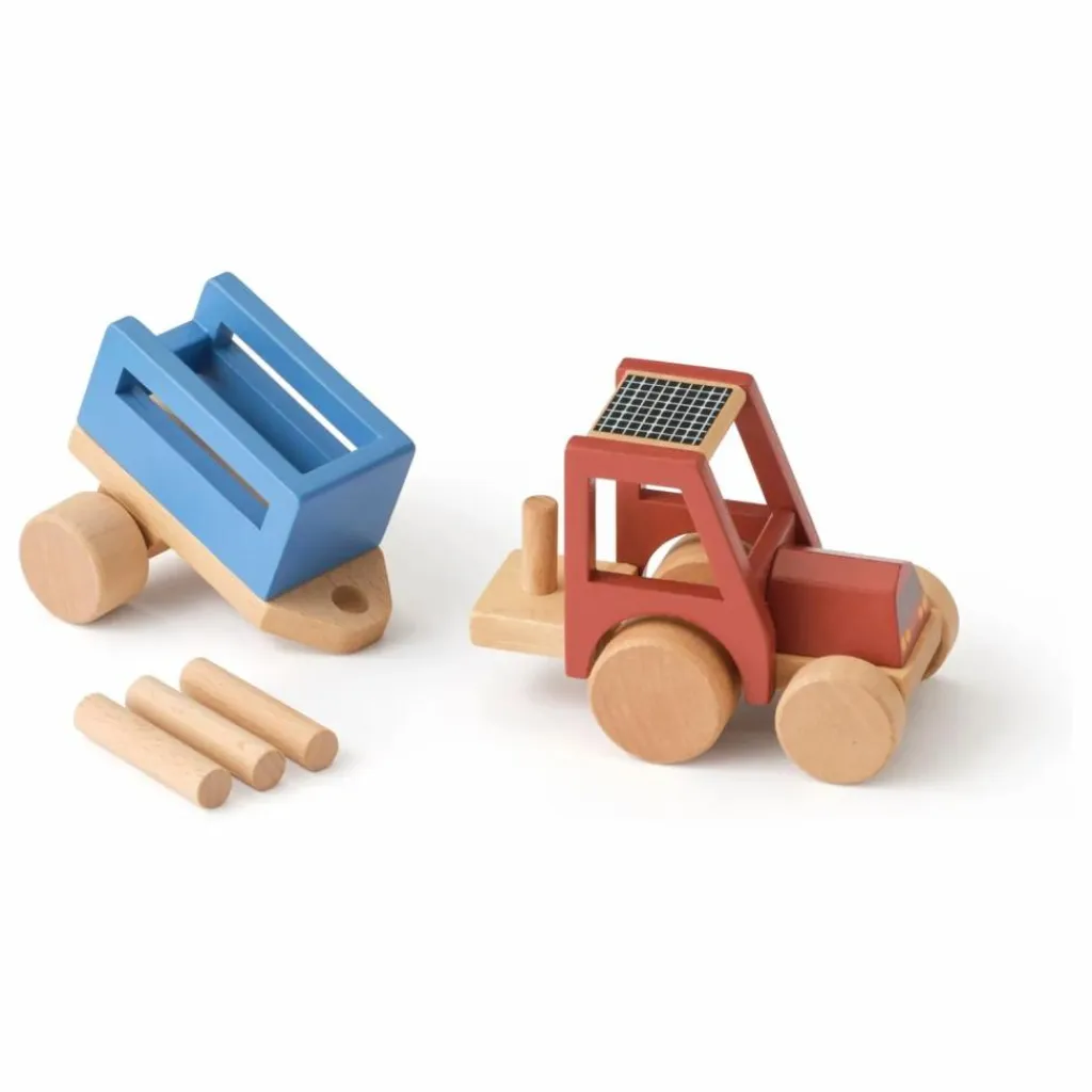 - Tracteur compact idéal pour les jeunes enfants. Il comprend trois « rondins de bois » à charger et décharger sans retenue. La remorque est détachable et suffisamment spacieuse pour transporter une figurine des animaux de la ferme ou d’autres petits objets, stimulant le jeu d’imagination. There’s a routable button with a click sound for added excitement. Et naturellement, il y a un panneau solaire sur le toit. Des rondins à charger, tellement rigolo.