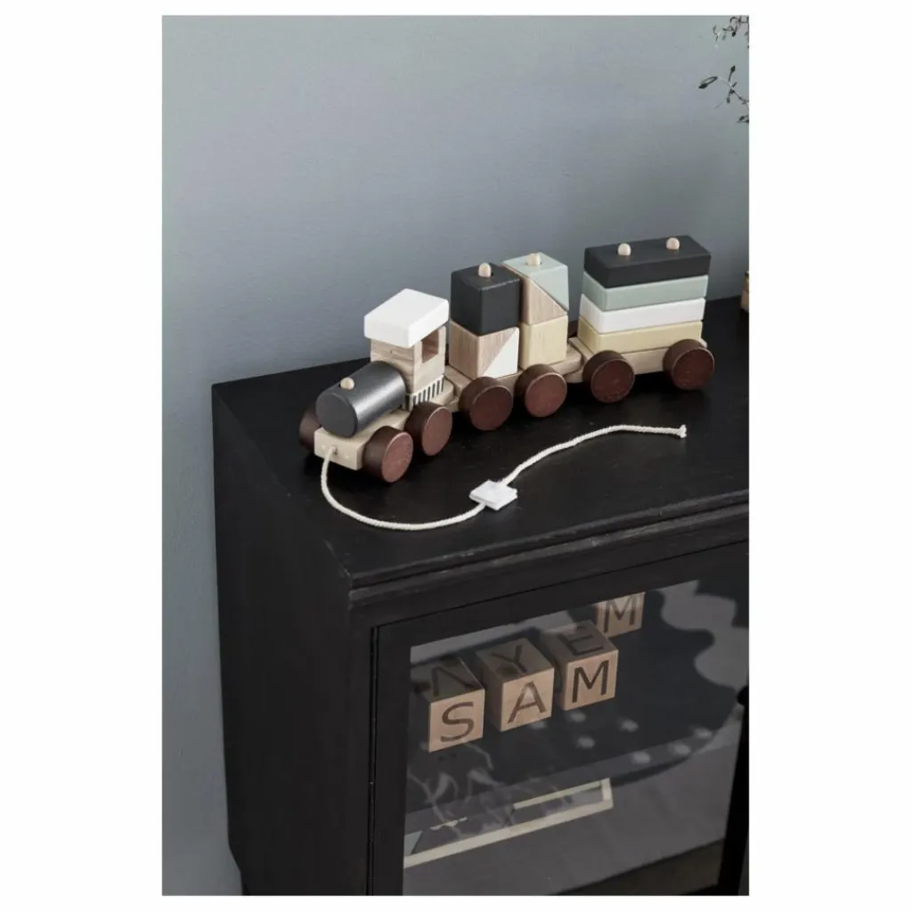 Ce train comprend une locomotive et deux wagons avec des formes qui peuvent être empilées sur les wagons en différentes combinaisons. C’est un jouet à tirer qui pourra accompagner votre enfant dans l’apprentissage de la marche. Grâce à ses cubes en bois, c’est aussi un jouet de construction qui aidera à développer sa motricité.