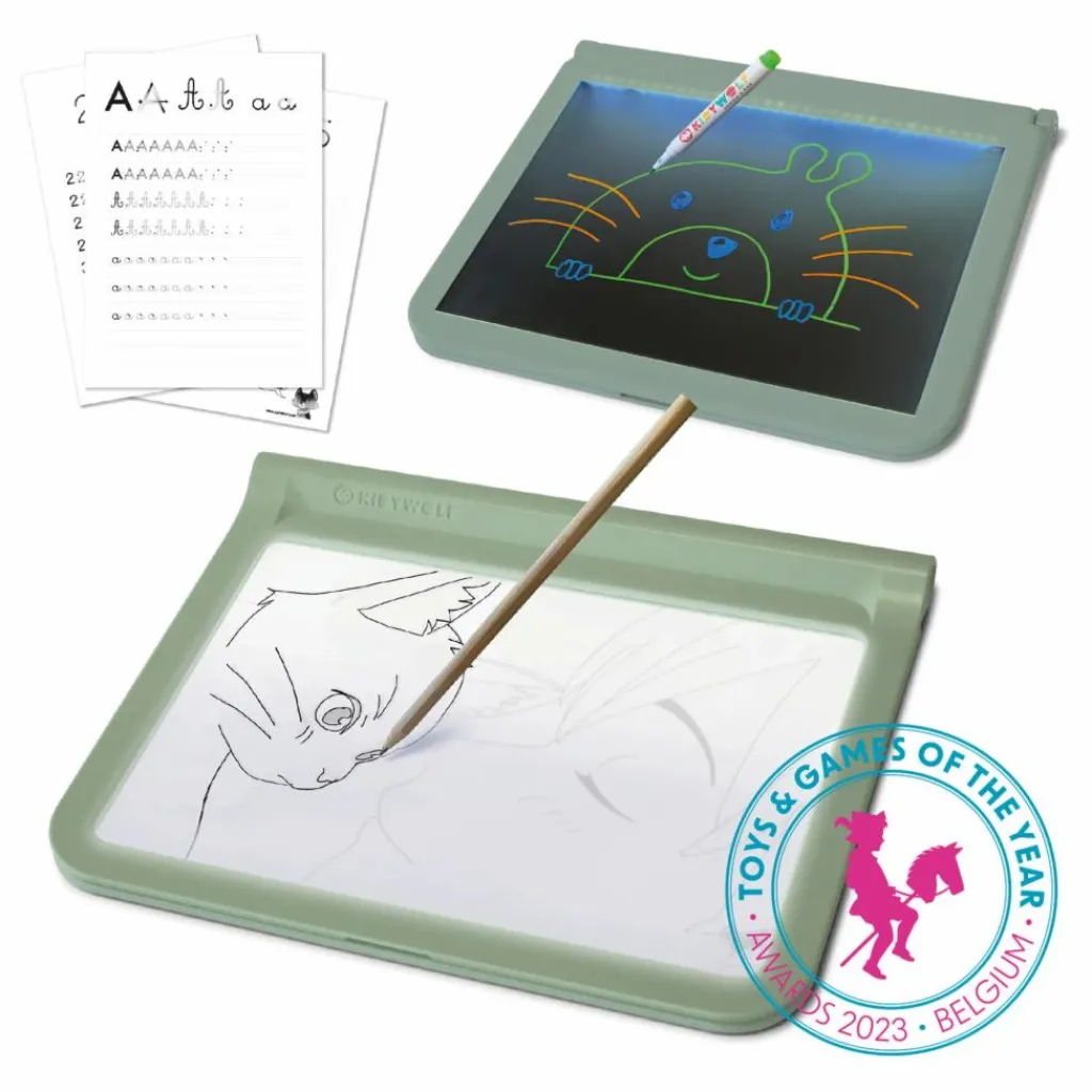 Avec cette tablette nomade et lumineuse, votre enfant apprendra à reproduire à l’identique les lettres, les chiffres ou n’importe quel dessin. La partie arrière sert de tableau noir avec un effet néon, pour mieux faire ressortir les couleurs.