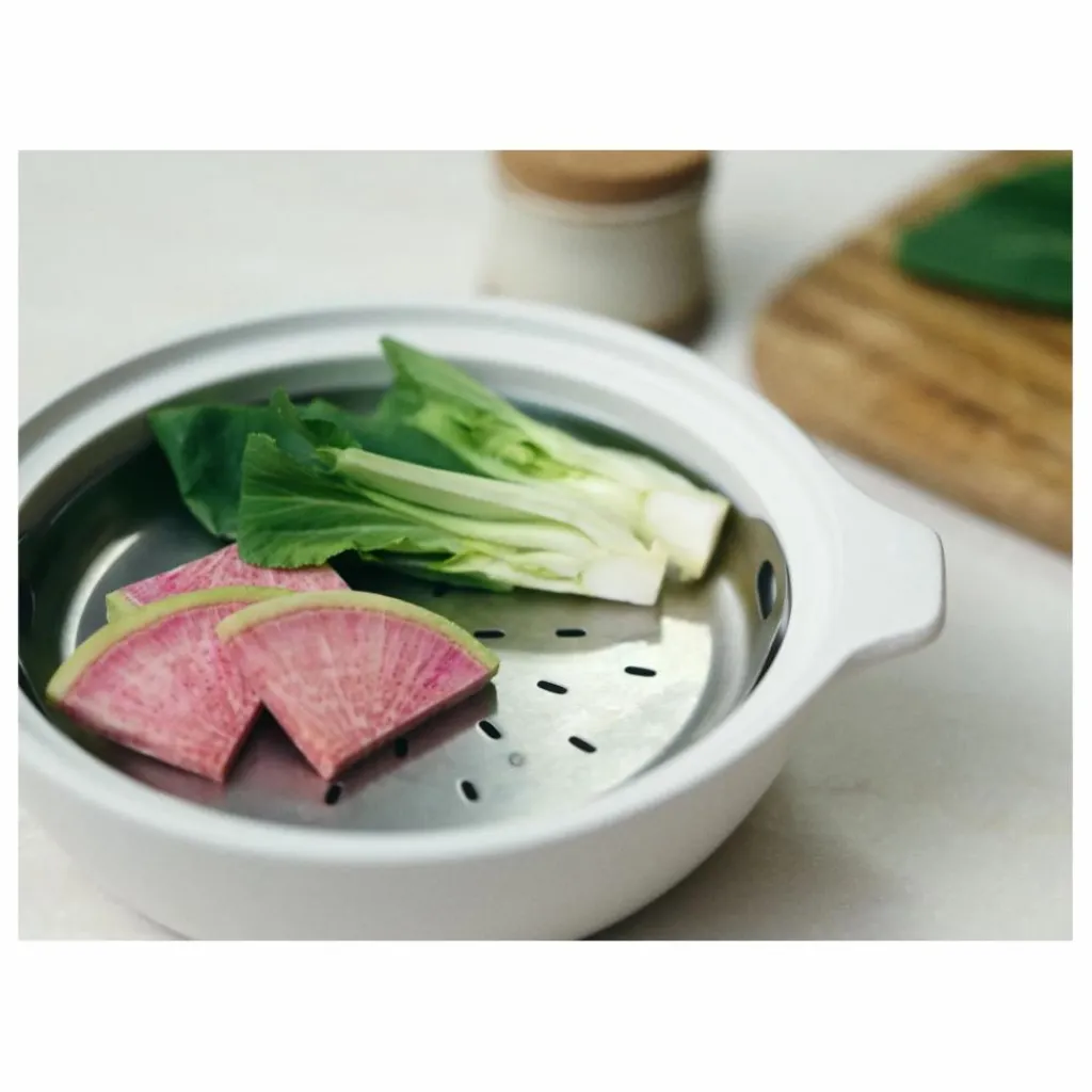 - La plaque à vapeur 230 mm est conçue pour les casseroles en émail KAKOMI de 2 litres et les casseroles en céramique de 2,5 litres. Elle peut également être utilisée avec des poêles à frire ou des casseroles d’un diamètre de 25 cm ou plus. Le bord surélevé permet de contenir les ingrédients et les poignées permettent de la sortir facilement de la casserole.