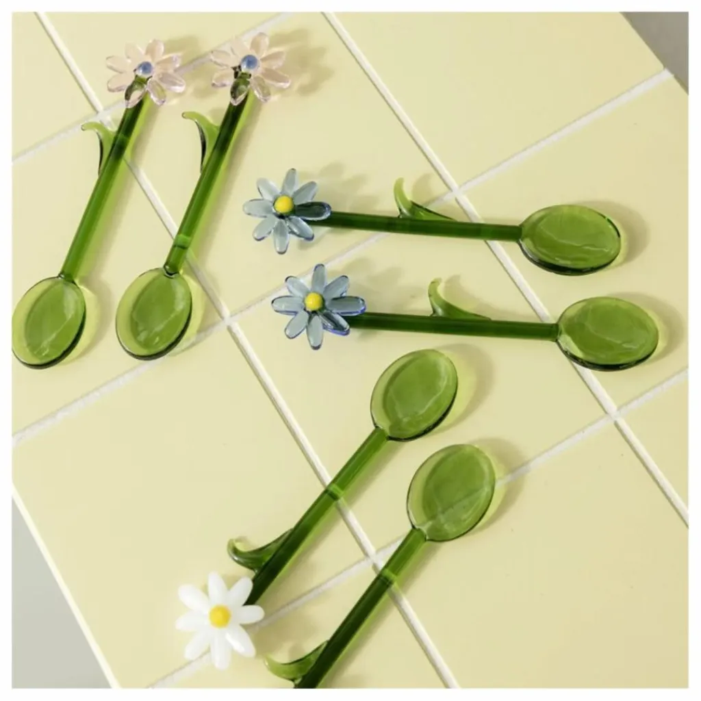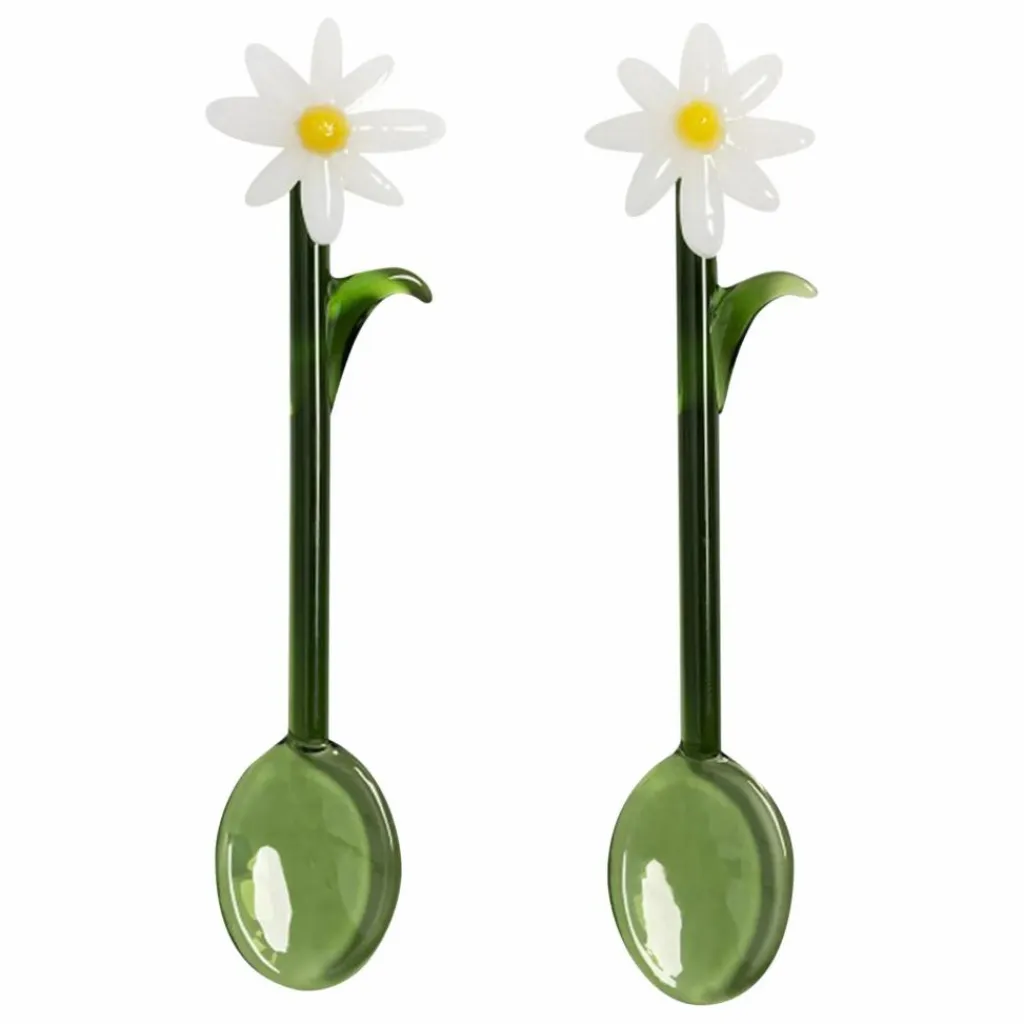 - Le set de cuillères Flora est fabriqué en verre borosilicaté, conçu pour s’associer parfaitement aux verres à eau Flora. Avec ses fleurs et ses feuilles placées à la main, chaque ensemble de deux cuillères est unique, ajoutant un charme unique et artisanal à n’importe quelle table. Emballé dans un coffret cadeau, ce set est idéal pour les rassemblements estivaux ou comme cadeau attentionné pour égayer la journée de quelqu’un.