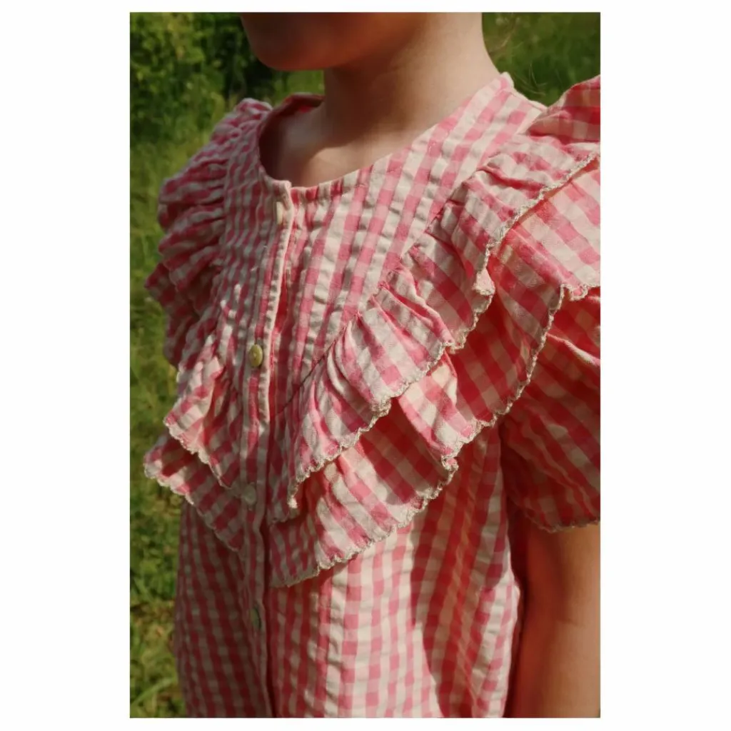 - Chemise à volants en tissu seersucker doux. Matière : 100% coton biologique. GOTS, biologique, certifié par CU1094701.