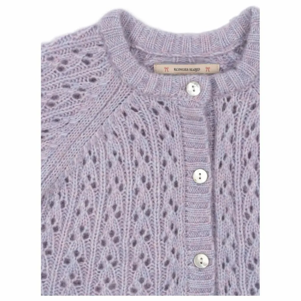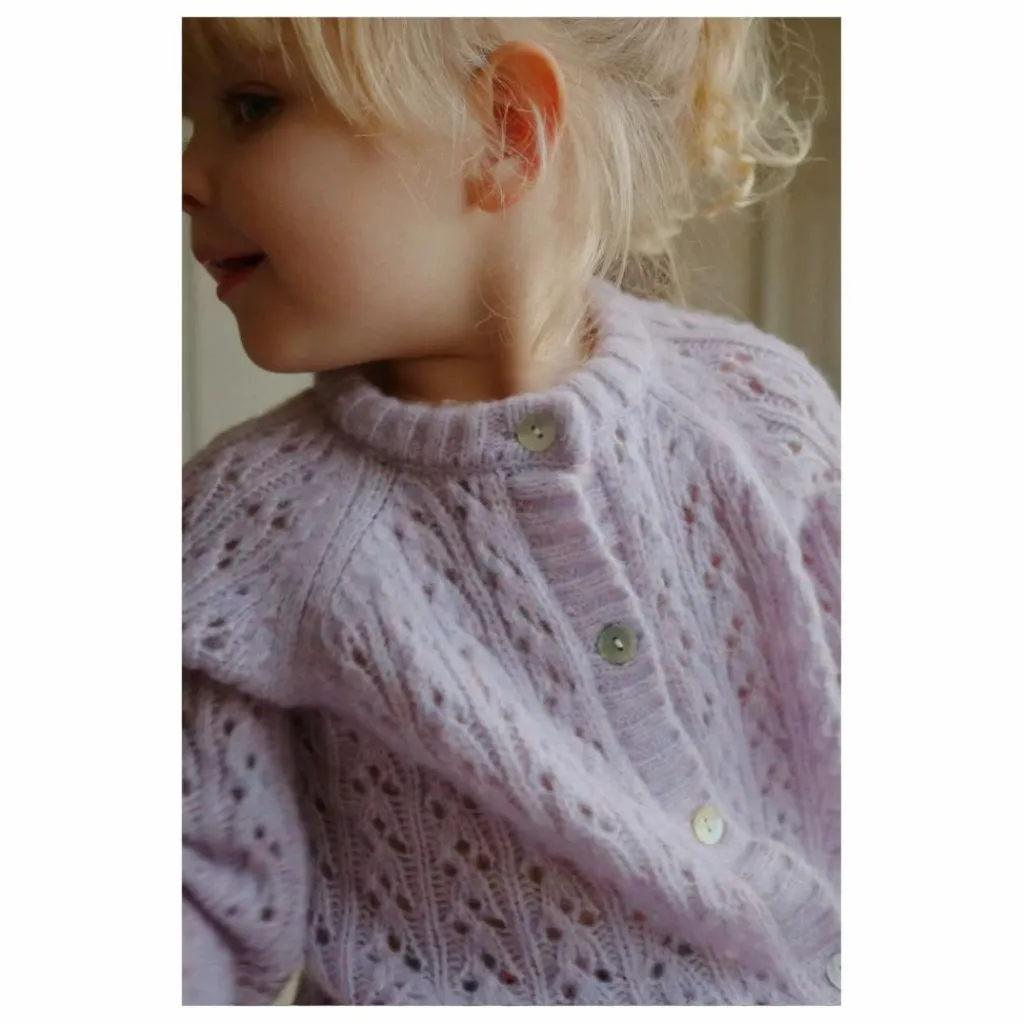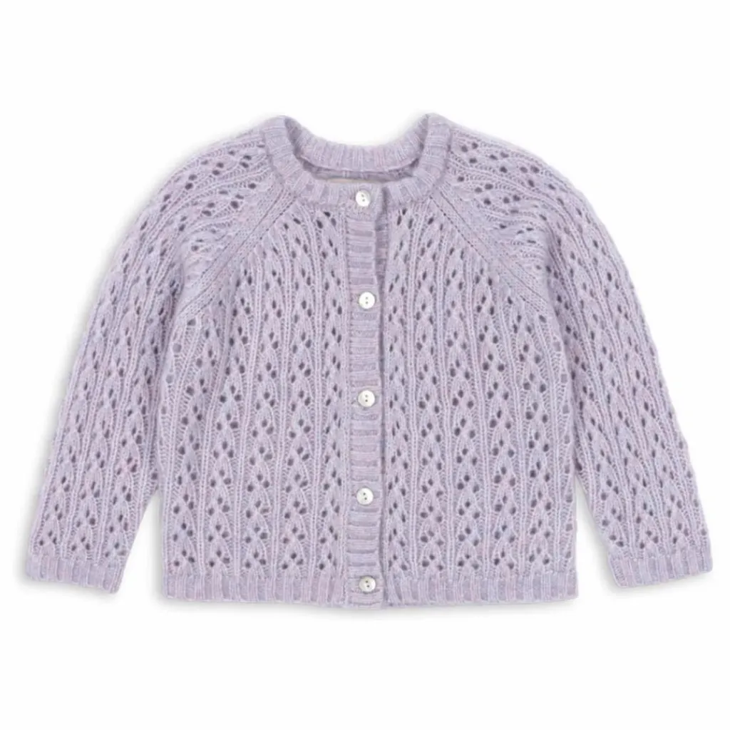 - Cardigan doux et moelleux en laine mélangée. Tricoté selon un motif structuré à trous et terminé par des boutons en nacre sur le devant.