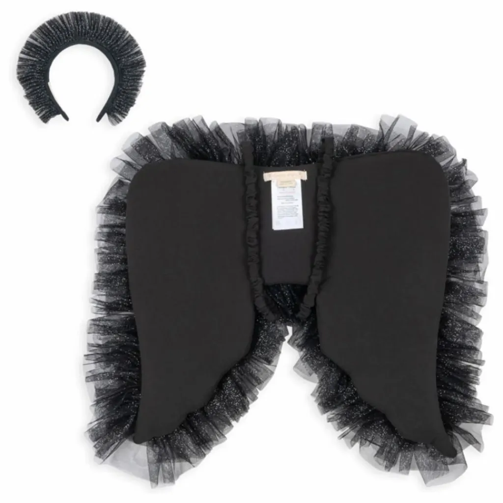 - Costume d’Halloween d’ange noir comprenant un bandeau et des ailes duveteuses avec des sangles élastiques faciles à enfiler.