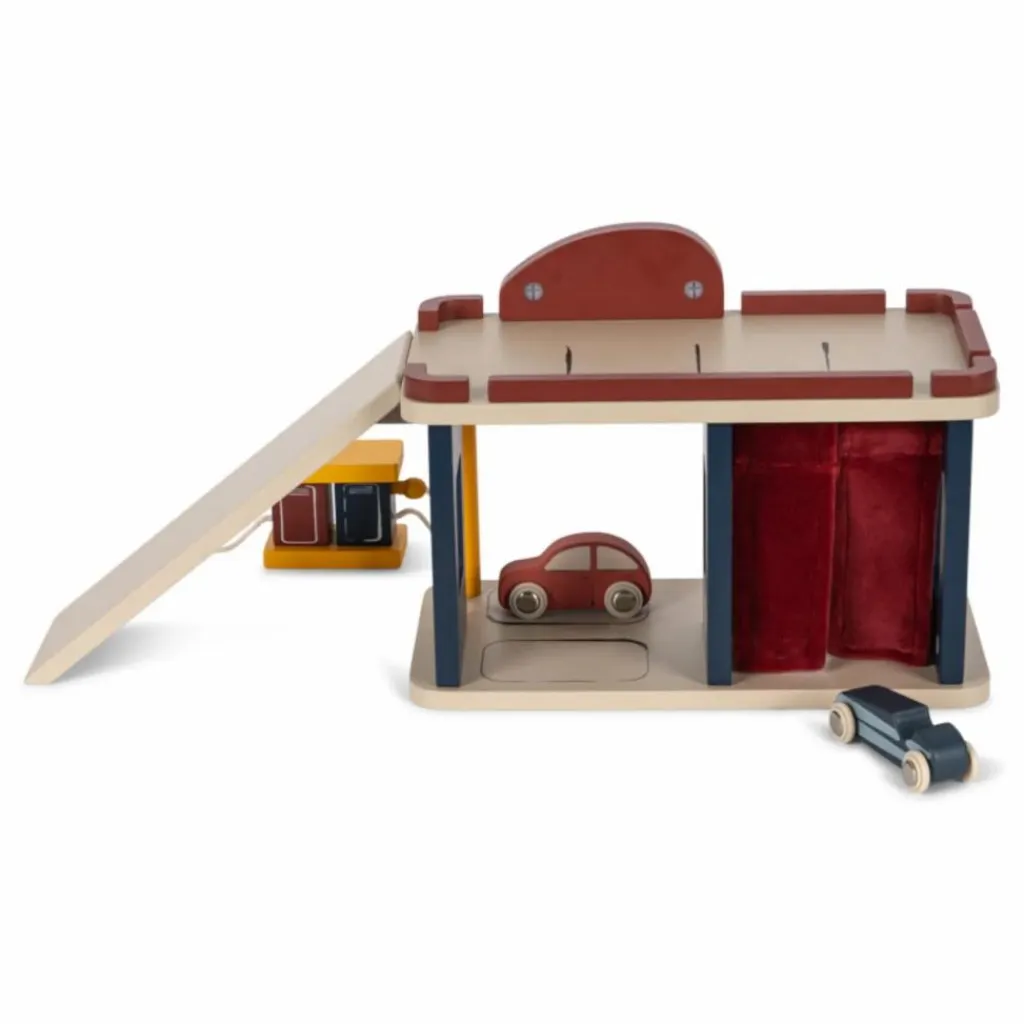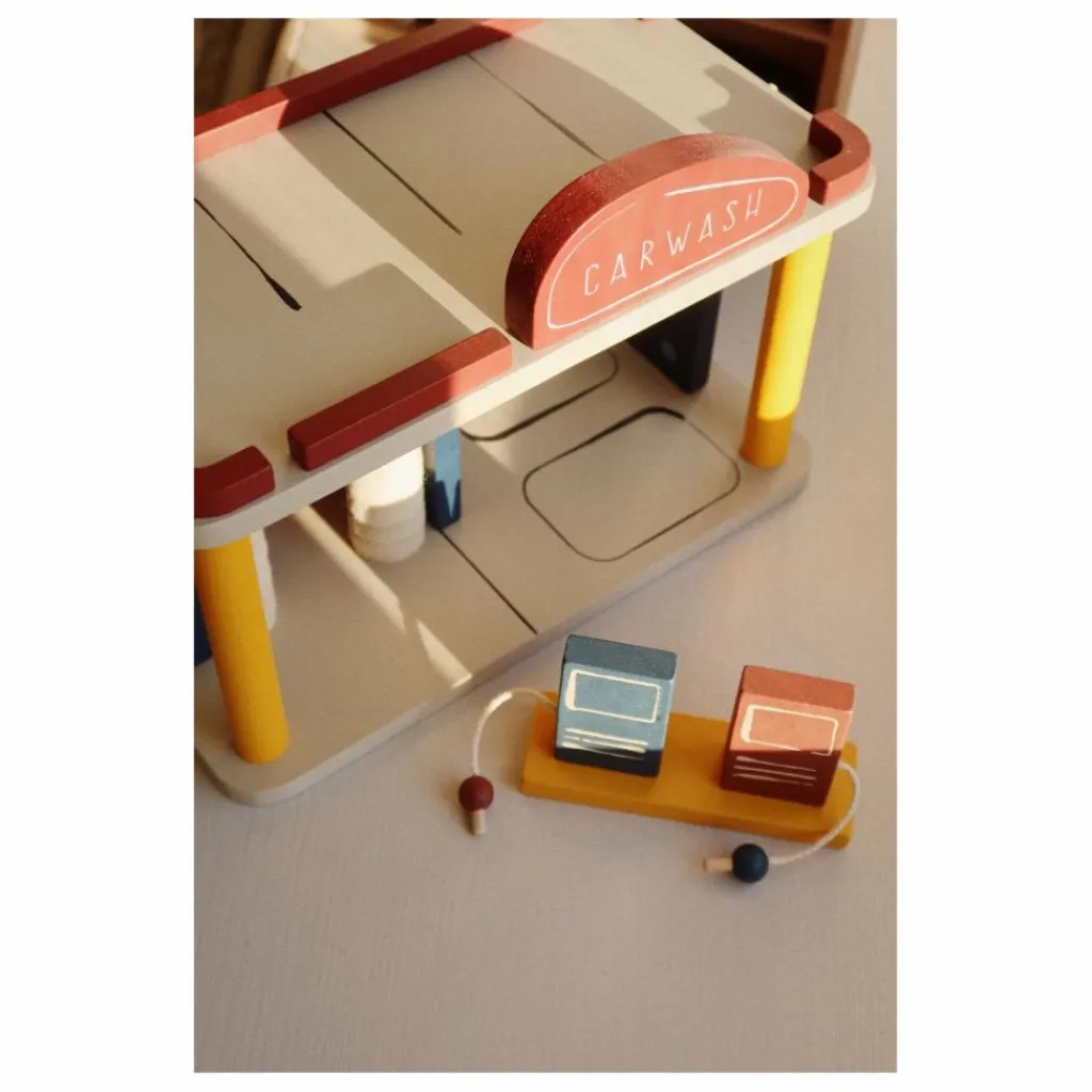 Cette station de lavage en bois comprend une rampe et deux mini-voitures pour permettre aux plus petits d’apprendre dès maintenant les bons gestes.
