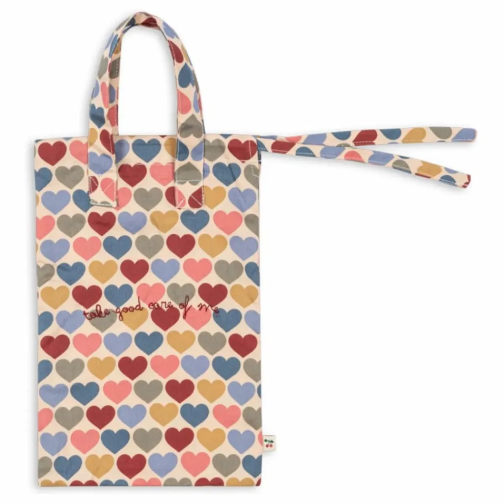 - Une couche avec fermeture velcro, un bavoir, une mousseline et un sac