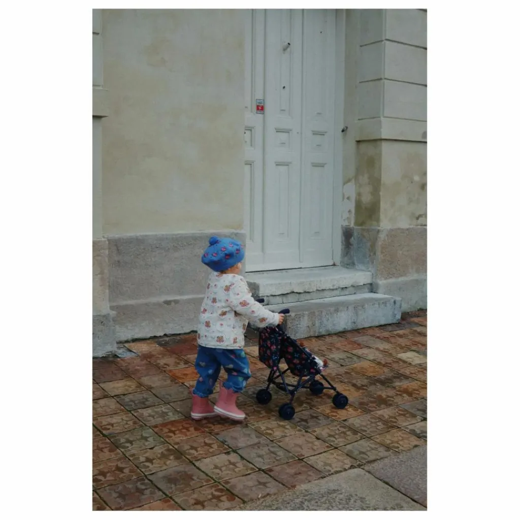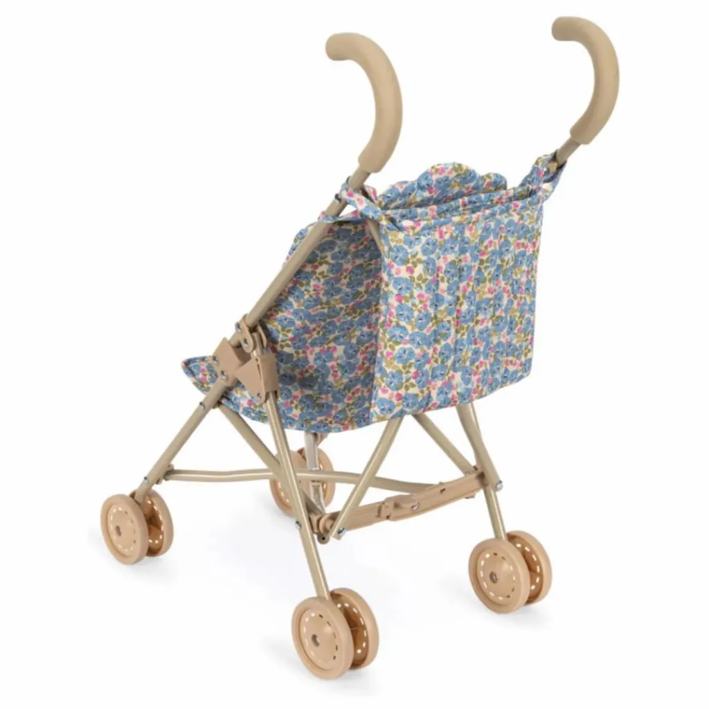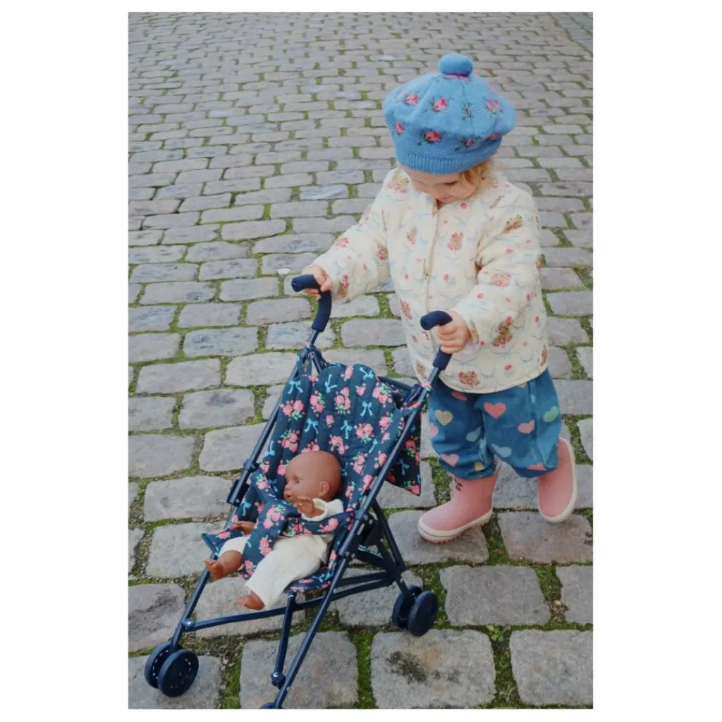 - Poussette pour poupée conçue avec un harnais, un sac de transport et des roues doubles sur les quatre pieds pour plus de stabilité. Le tissu est amovible. Entièrement assemblée, elle est facile à plier et à ranger.
