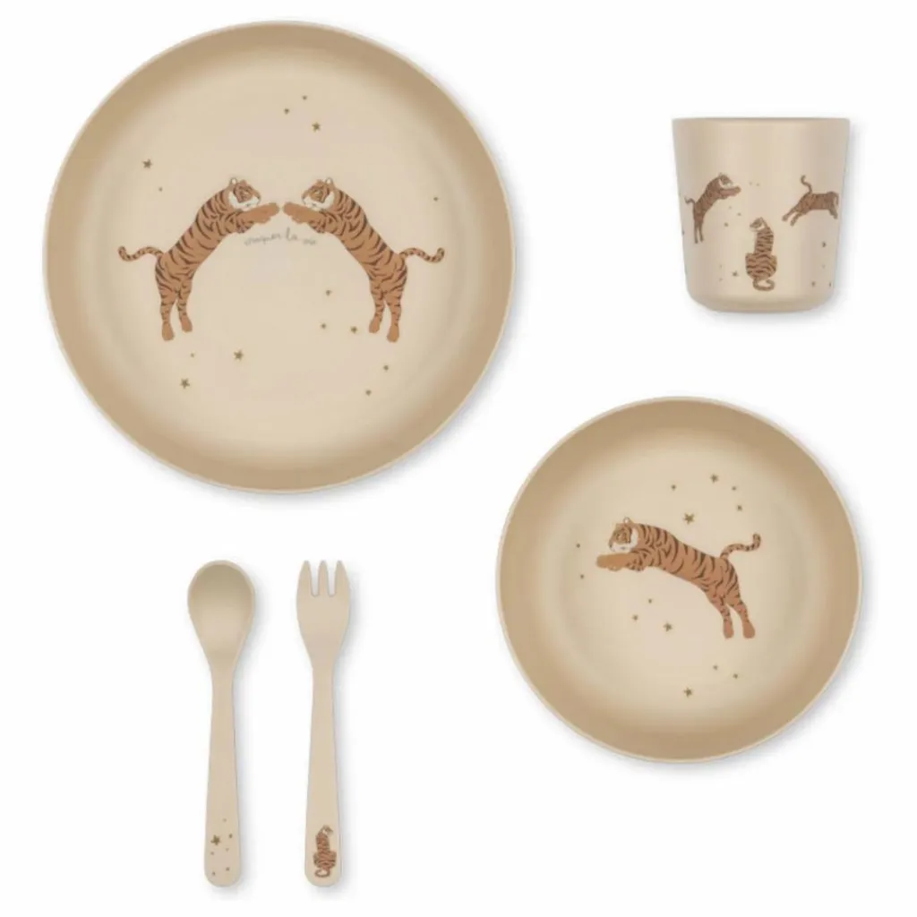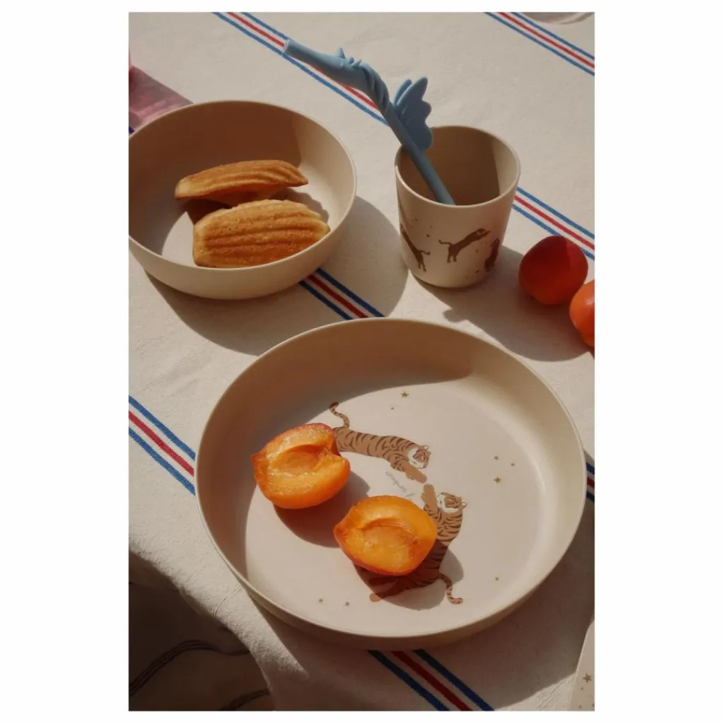- Interdit à la vente aux États-Unis. Set de table pour les petits repas. Comprend une assiette, un bol, une tasse et des couverts. Pas de chauffage ou de contact avec les aliments à plus de 70°C. Ne convient pas au micro-ondes. Passe au lave-vaisselle. Matériaux : 100% Polyactide (PLA). Dimensions : Assiette : H : 3,55 cm x P : 19 cm,. Bol : H : 4,35 cm x P : 14,5 cm. Tasse : H : 7,5 cm x P : 7 cm. Couverts : L : 2,5 cm x L:13,5 cm x P : 0,5 cm. Convient à partir de 6m+. Testé et conforme aux réglementations de l’UE concernant le contact alimentaire 1935/2004 et à la LFGB allemande §30 et 31.
