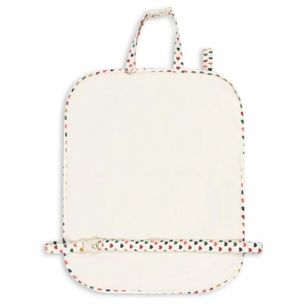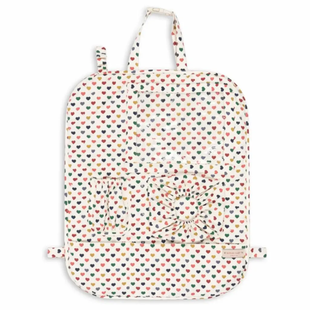 - Organisateur de voiture portable. Conçu avec des sangles réglables qui s’attachent à l’appui-tête et au siège de la voiture. Comprend un compartiment pour tablette et des poches de différentes tailles. L’une d’entre elles est spécialement conçue pour les lingettes humides, ce qui facilite le rangement et l’organisation des éléments essentiels. L’organiseur comporte également une sangle élastique avec fermeture velcro pour suspendre un jouet d’activité ou un étui à sucette. Matériaux : Partie principale 100 % coton biologique. Rembourrage 100% polyester recyclé. Dimensions : H : 61 cm x L : 49 cm. A n’utiliser que dans une voiture, conformément aux instructions.
