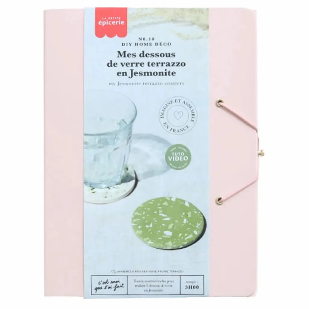 Vous avez toujours voulu vous initier à la Jesmonite ? Vous adorez le DIY ? Mes dessous de verre terrazzo en Jesmonite de la Petite Épicerie est fait pour vous ! Grâce à ce tout nouveau kit, vous aurez la possibilité de donner vie à une création sophistiquée à mettre en décoration chez vous.
