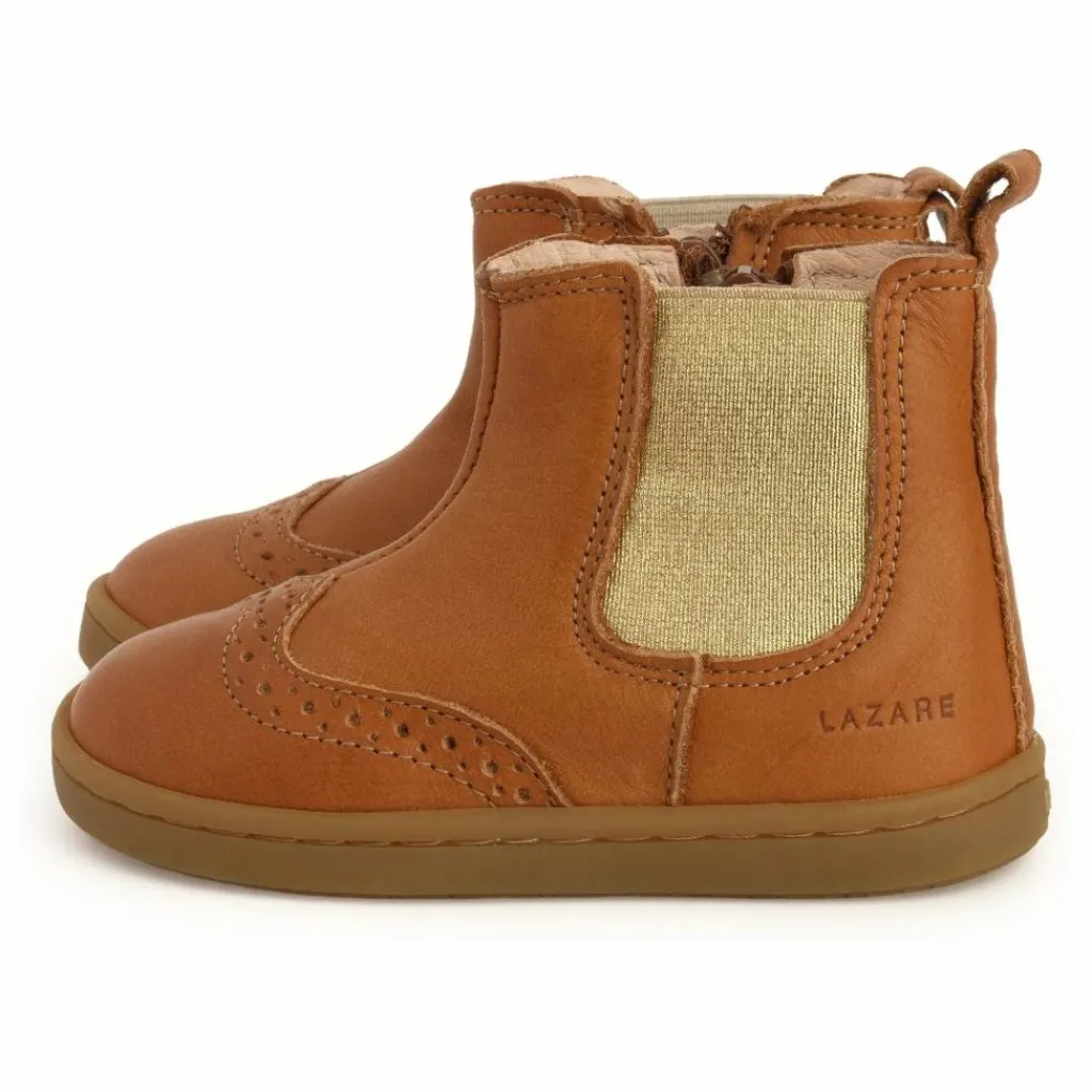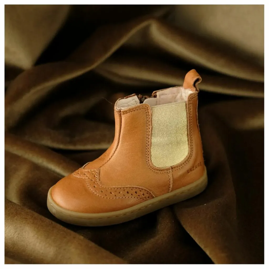 - Les chaussures premiers pas Axelle sont conçues pour accompagner les enfants ayant acquis la marche autonome. Inspirées de la Chelsea boot, elles combinent élégance et praticité avec un élastique latéral et une fermeture zippée intérieure, facilitant l’enfilage et favorisant l’autonomie. Fabriquées en cuir sans chrome et sans métal, elles offrent souplesse et confort grâce à une semelle en caoutchouc sans voûte plantaire et une construction cousue Strobel, respectant le développement naturel du pied. Leur bout fleuri apporte une touche raffinée, et la languette arrière facilite l’enfilage.