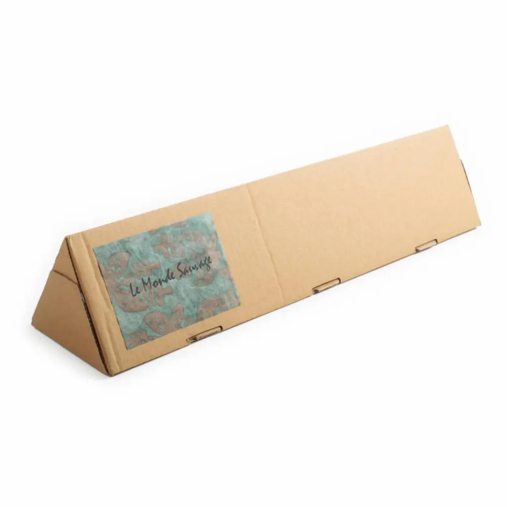- À la différence d’un papier peint classique, la combinaison de ces feuilles irrégulières donnera un effet original, à poser sur une surface complète, ou en touche pour créer un motif. La pose du papier se fait sans tenir compte du raccord et en gardant le bord frangé, il est souhaitable de voir la délimitation de chaque feuille, ces éléments sont la signature si particulière de ce papier peint.