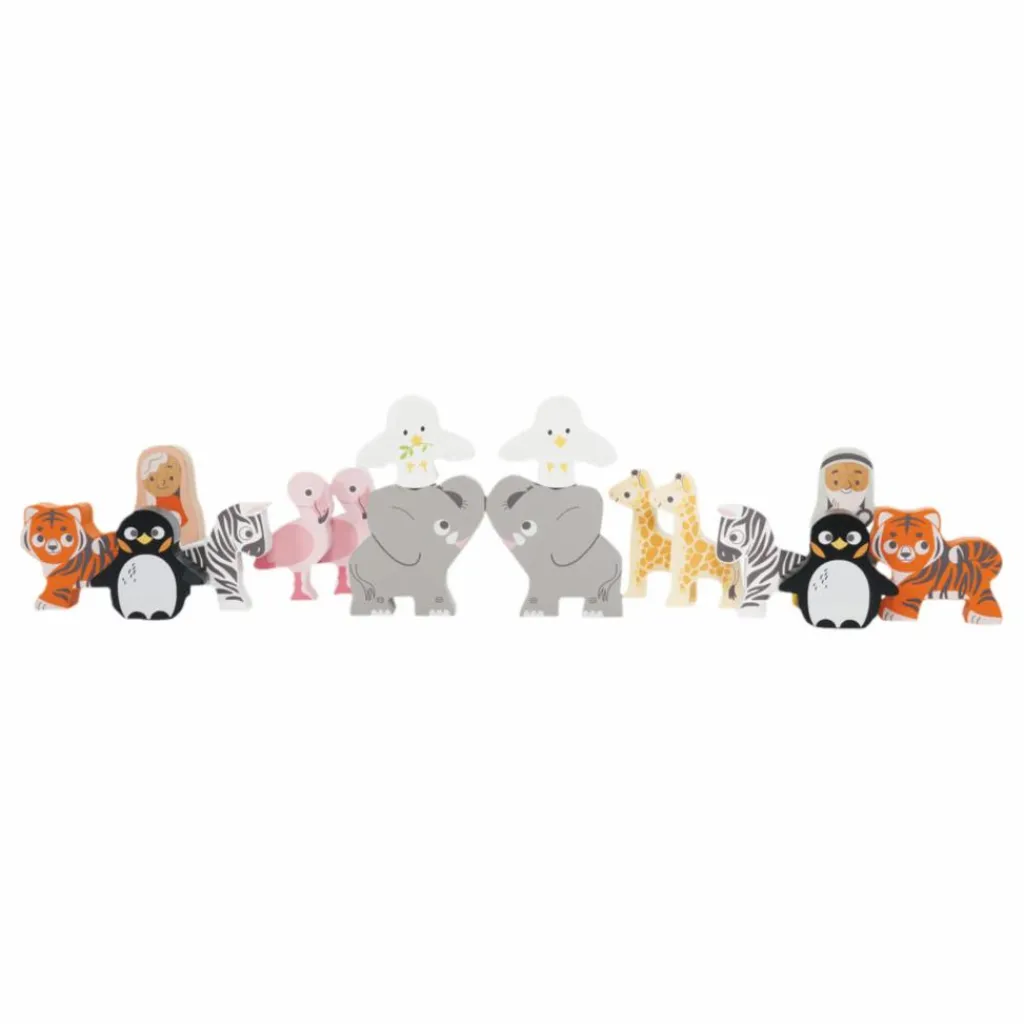 - 7 paires d’adorables formes d’animaux en bois ainsi que Noé et sa femme