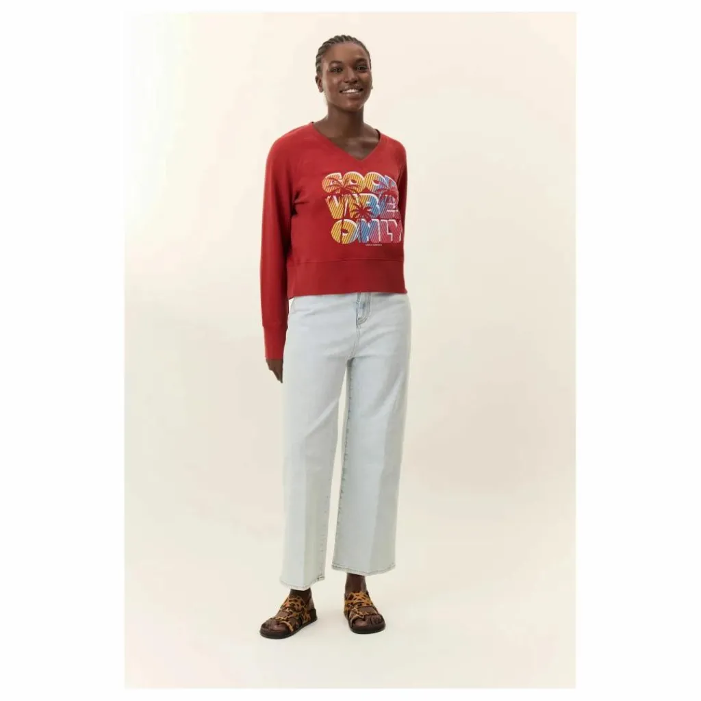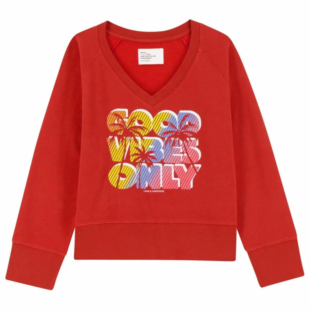 - Le sweat Shavi Only est une pièce casual et vibrante, idéale pour un look décontracté. Son inscription « Good Vibes Only », accompagnée de palmiers lui confèrent une ambiance estivale et positive. La femme Leon & Harper l’associe avec un jean ou une jupe pour look casual chic empreint de bonne humeur et d’énergie positive.