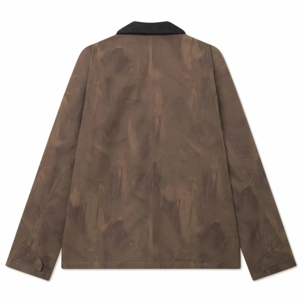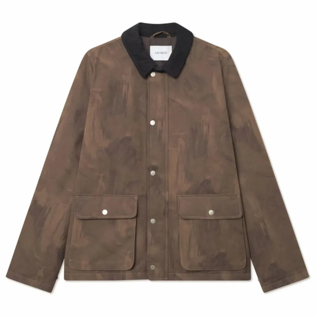 - Coquille en coton mélangé brossé Imprimé camouflage Col contrasté en velours côtelé Fermeture à glissière couverte Poches à rabat sur le devant Poignets boutonnés