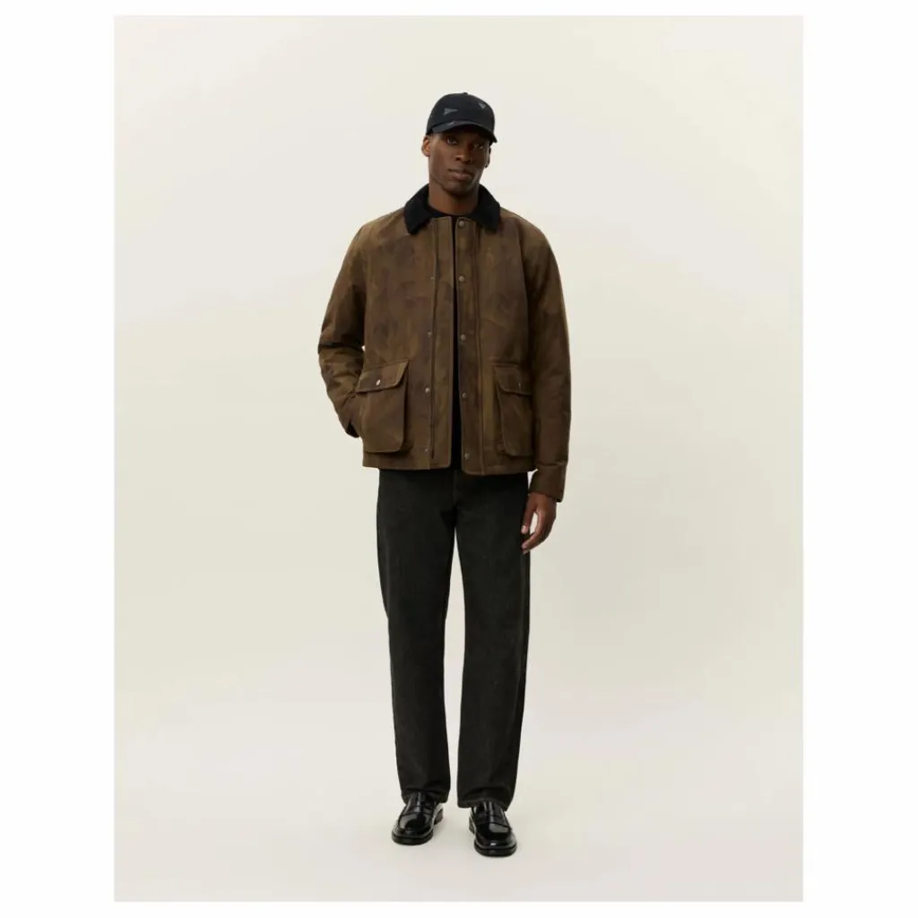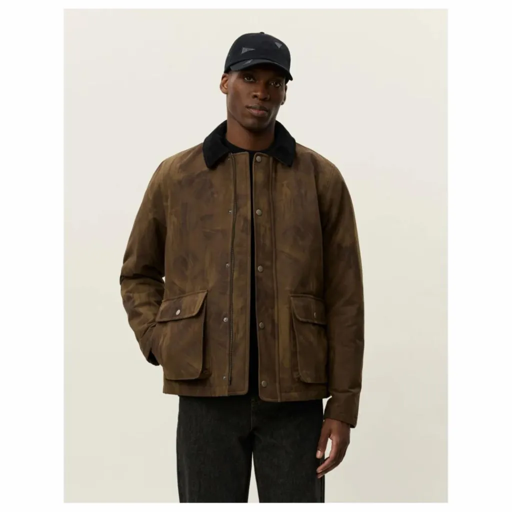 - Veste imprimée en coton mélangé brossé avec poches, col contrasté en velours côtelé et fermeture à glissière couverte