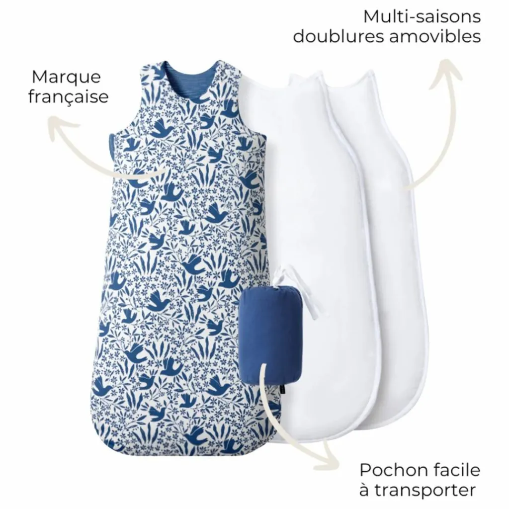 Astucieuse, cette gigoteuse s’adapte toute l’année et dans toutes les situations grâce à son épaisseur évolutive. De plus, elle est facilement transportable grâce à son petit pochon.