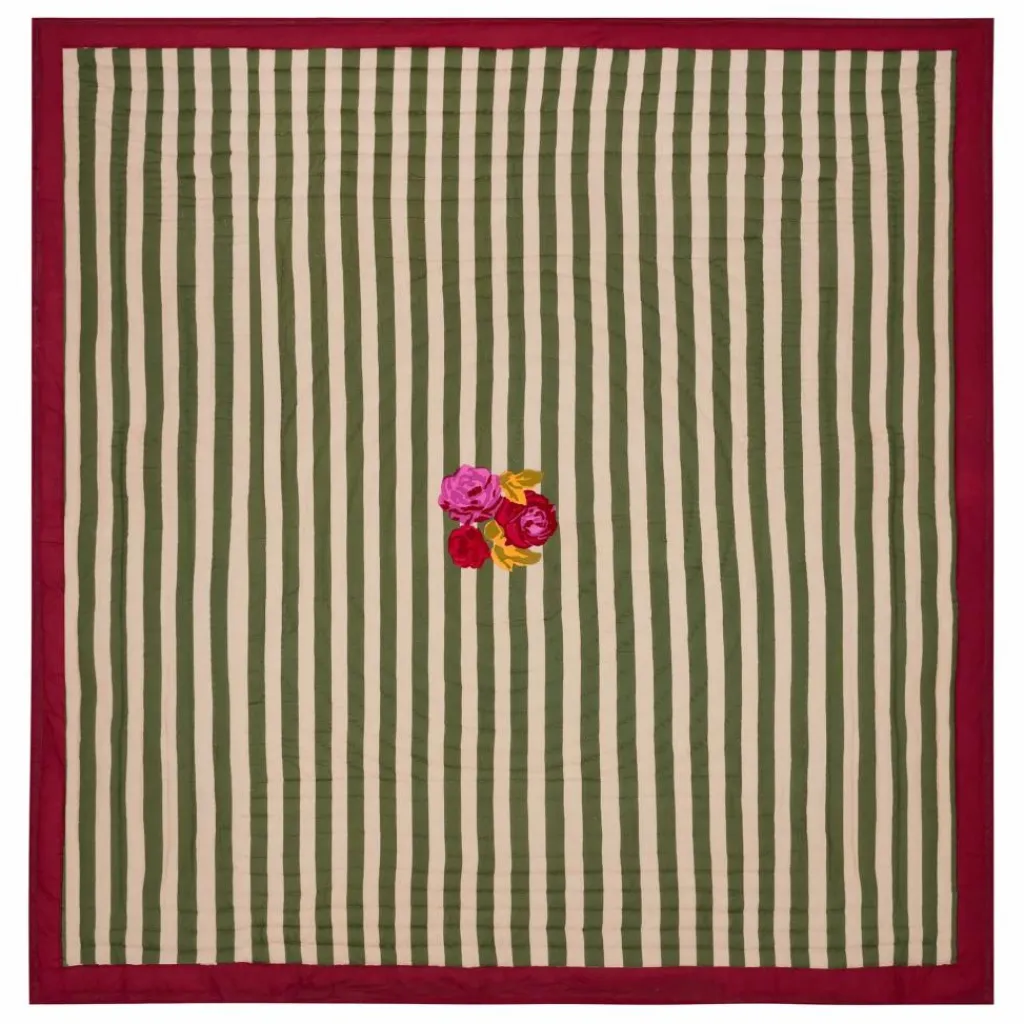 - Symbole global des loisirs, ce quilt réversible king-size se marie à merveille avec les coussins ou les rideaux de la maison pour ajouter une nouvelle couche de couleurs à motifs à votre chambre à coucher, en se retournant pour donner aux saisons changeantes une allure toujours verte. Les rayures Nizam en vert naturel confèrent aux maisons un caractère ludique et contemporain, en fusionnant le classique et le moderne. La fleur emblématique Nizam de Lisa Corti, adaptée d’un tapis français d’Aubusson, orne les textiles au milieu d’une tapisserie vibrante de rayures vertes et crème, faisant écho à la délicatesse des miniatures persanes. Une bordure bordeaux audacieuse encadre cette scène florale vivante, lui donnant de la profondeur et une grandeur intemporelle. Pour cette collection, Lisa Corti s’est lancée dans une nouvelle technique d’impression passionnante. Cette technologie innovante est unique car le motif imprimé provient d’un prototype sculpté à la main par un héros, créé à l’aide d’un bloc d’impression et fabriqué par des maîtres artisans en Inde, qui est ensuite copié sur du coton pur. Fabriquée exclusivement en Italie, cette nouvelle pratique à la fois artisanale et moderne incarne la fusion de l’héritage et de l’innovation de Lisa Corti.