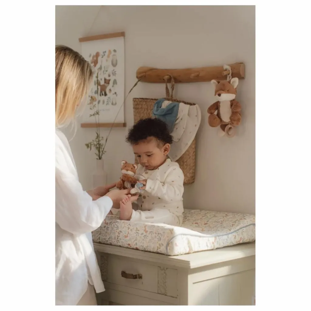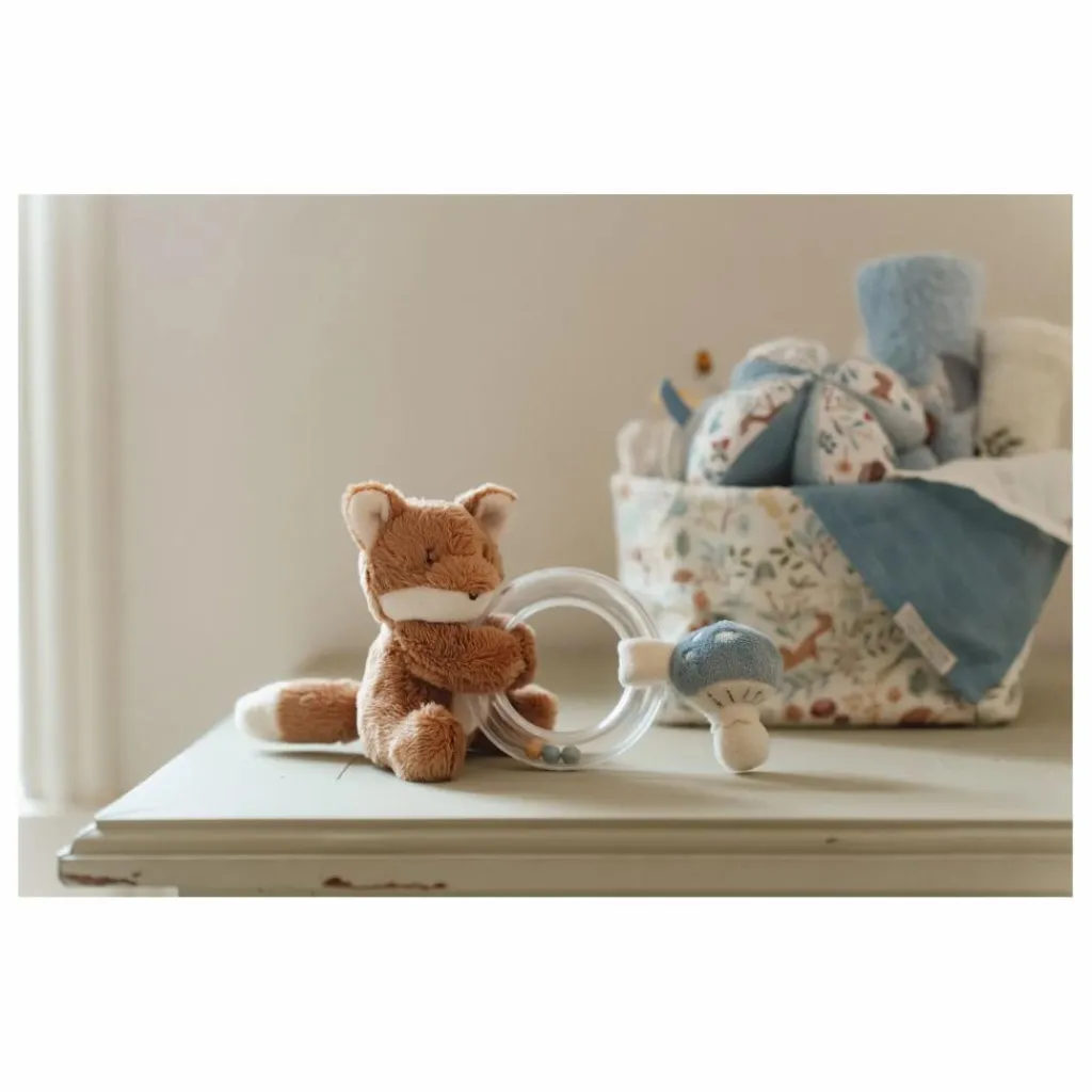 - Cet adorable renard, avec sa fourrure douce et son champignon à caliner, stimulera l’éveil des sens de votre bébé. L’anneau transparent contient 3 petites perles colorées qui produisent un doux cliquetis pour stimuler l’ouïe de votre enfant. Ce hochet renard éveillera la curiosité et les sens de votre bébé, tout en favorisant sa coordination main-œil.