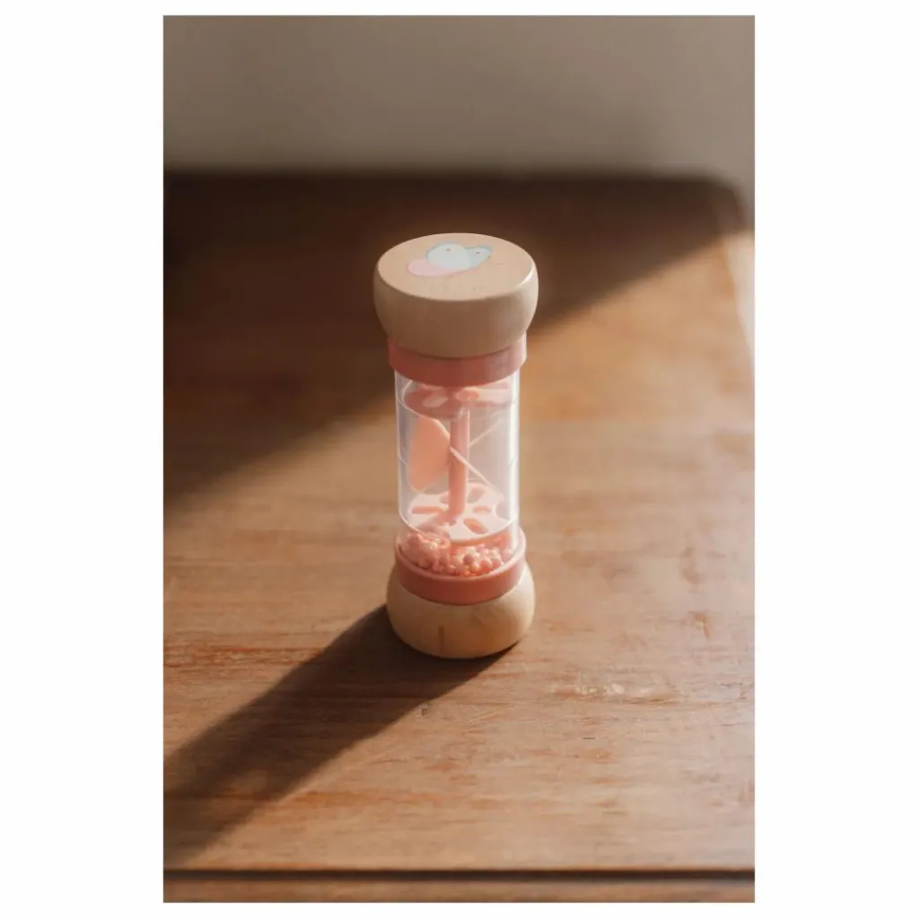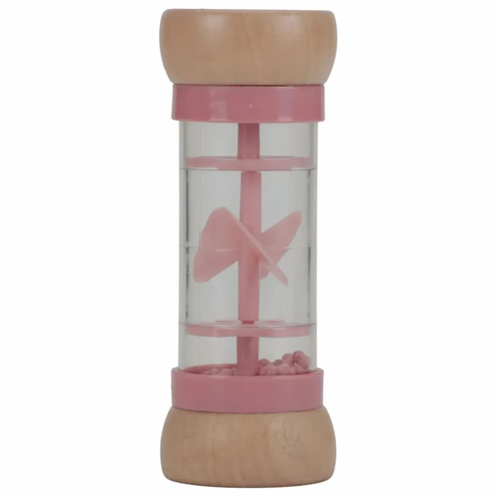 - Retourne le hochet et écoute les sons reposants de gouttes émis par les billes qui se déplacent d’un côté à l’autre du bâton de pluie. Il stimule le développement sensoriel et le talent musical de bébé. Les billes, de 3 couleurs différentes, tombent dans de petites ouvertures dans le tube et font tourner l’hélice, ce qui émet un son agréable. Le hochet bâton de pluie est conçu pour les petites mains. Le dessus et le dessous en bois sont décorés d’une illustration d’une fleur et d’un papillon de la collection Fairy Garden.