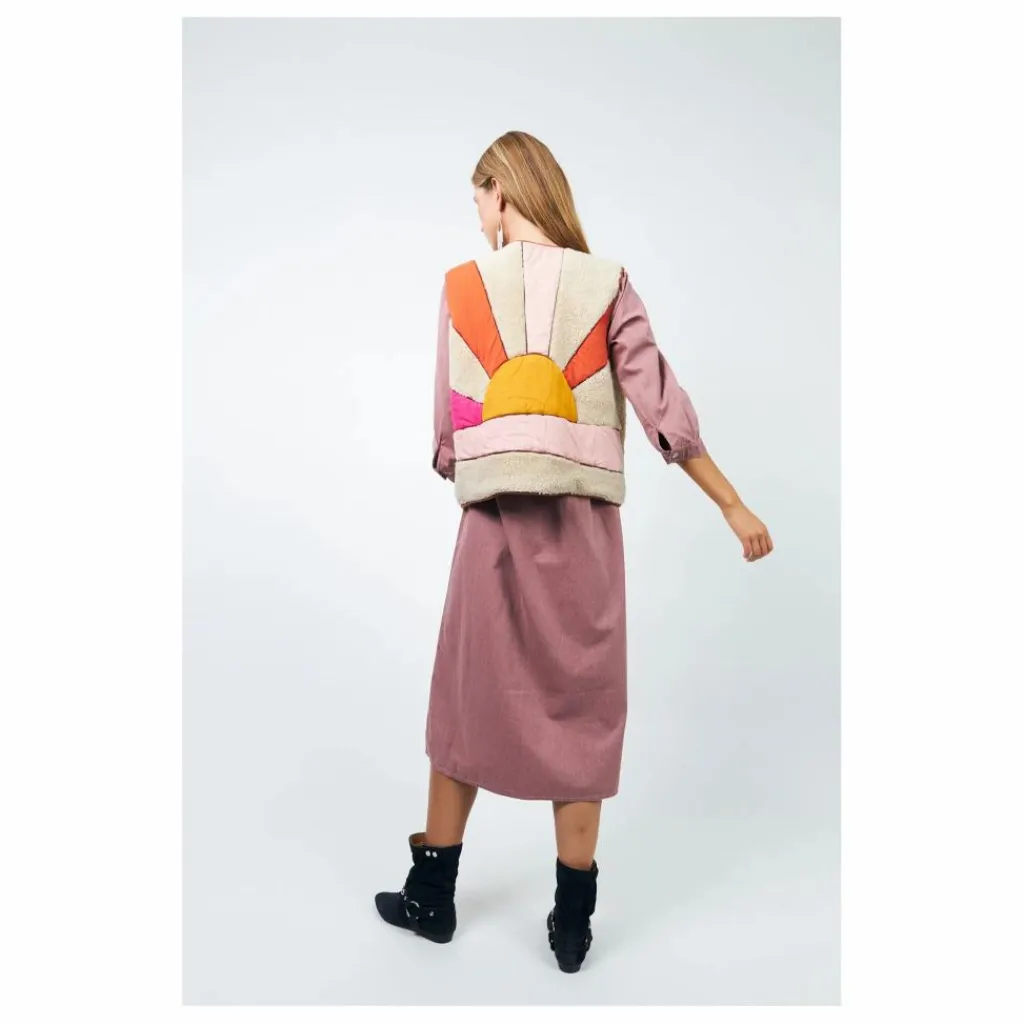 - Le gilet JaceLL est un modèle unique et douillet qui allie confort et design ludique. Fabriqué en tissu teddy doux avec des bords contrastés, des poches matelassées pratiques et un beau mélange de couleurs. Le dos est décoré d’un grand motif de soleil dans des tons chauds, ce qui confère au gilet un look distinctif. Tout ce qui définit Lollys Laundry – des détails ludiques, des imprimés colorés et une touche unique – se retrouve dans ce style à la fois fonctionnel et plein de personnalité.