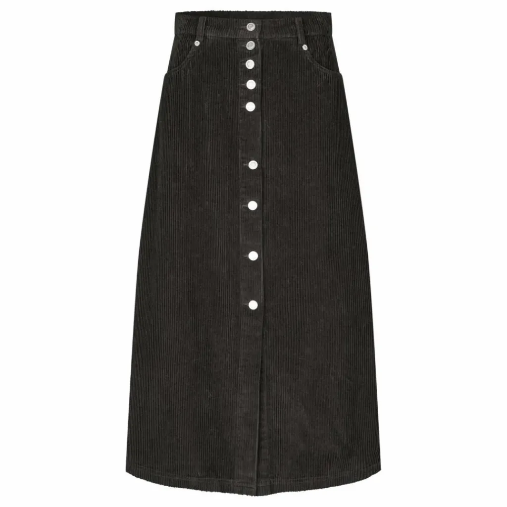 - EvasLL est une jupe flatteuse en velours côtelé épais, avec des boutons-pression sur tout le devant et une petite fente au bas qui ajoute du mouvement et de l’originalité. Elle est dotée d’une taille régulière, de passants de ceinture, de poches latérales et de grandes poches arrière pour une allure décontractée. Disponible en moka foncé et en bleu néon.