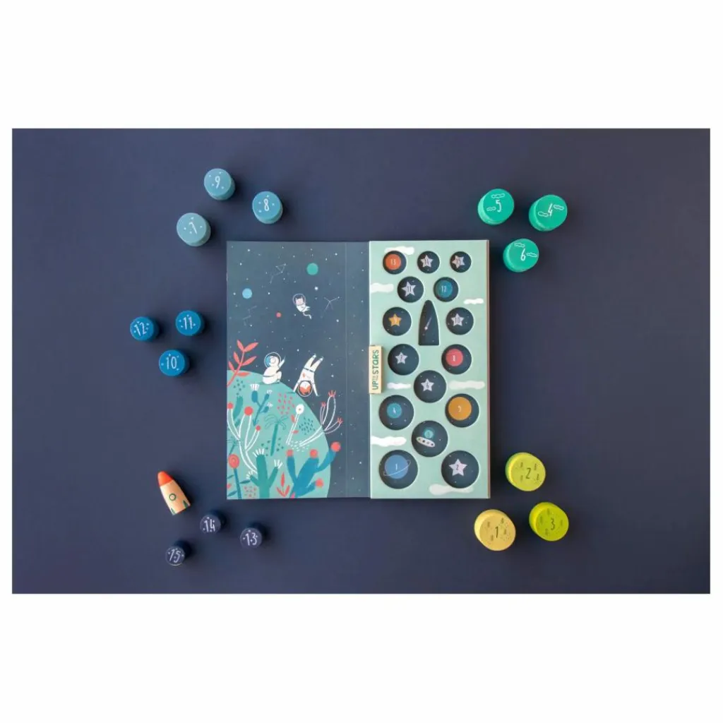 Fabriquez votre fusée à l’aide des pièces en bois et du manuel de construction. Et lorsque c’est fini, vous pouvez réutiliser les pièces pour des jeux d’équilibre ou tout simplement pour apprendre à compter !