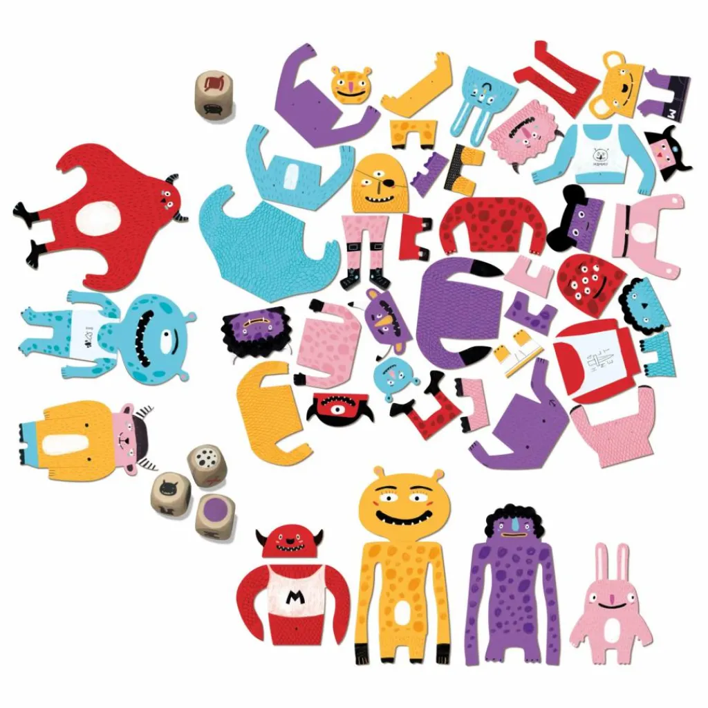 - 4 dés, x20 têtes de monstres, x20 haut de corps de monstres, x20 jambes de monstres