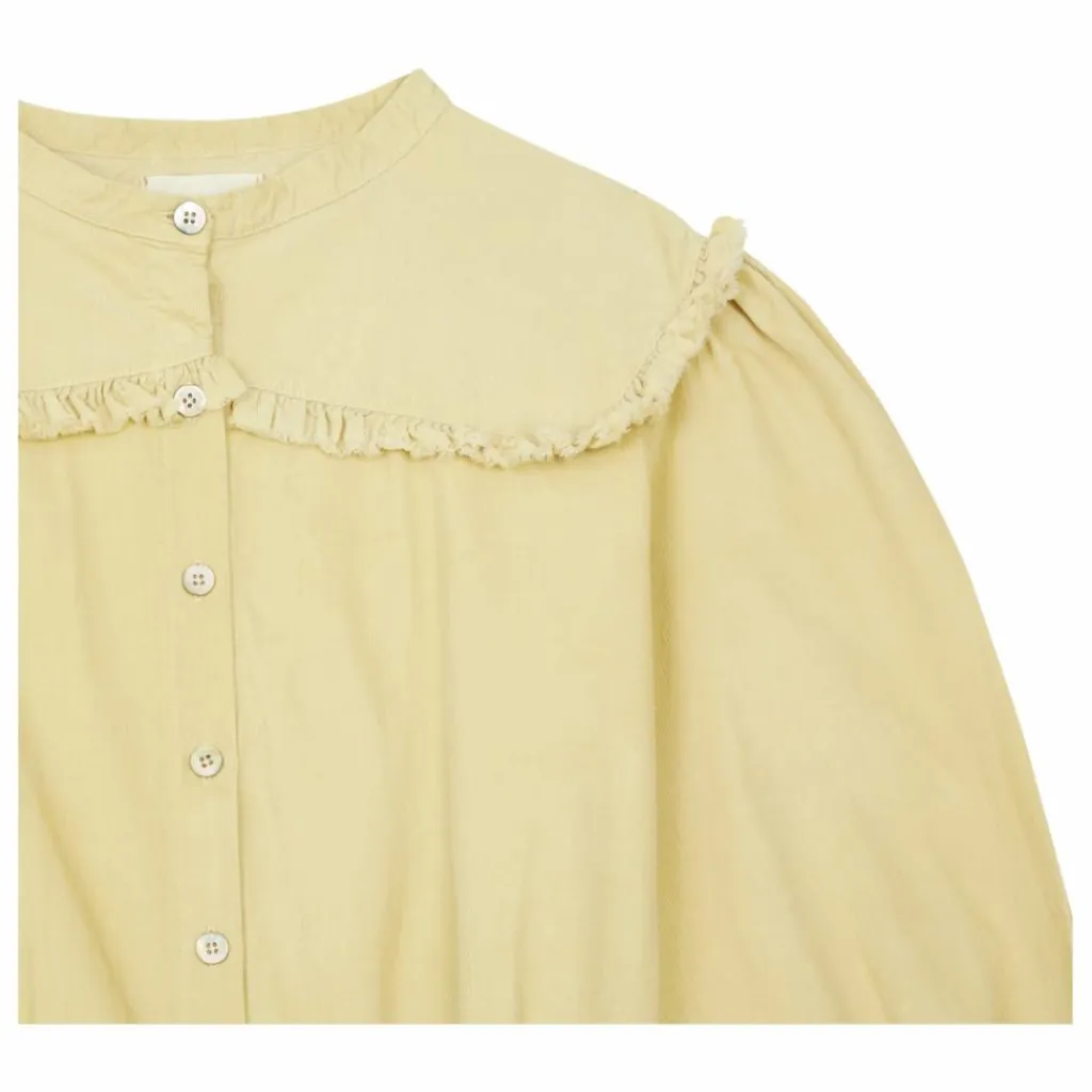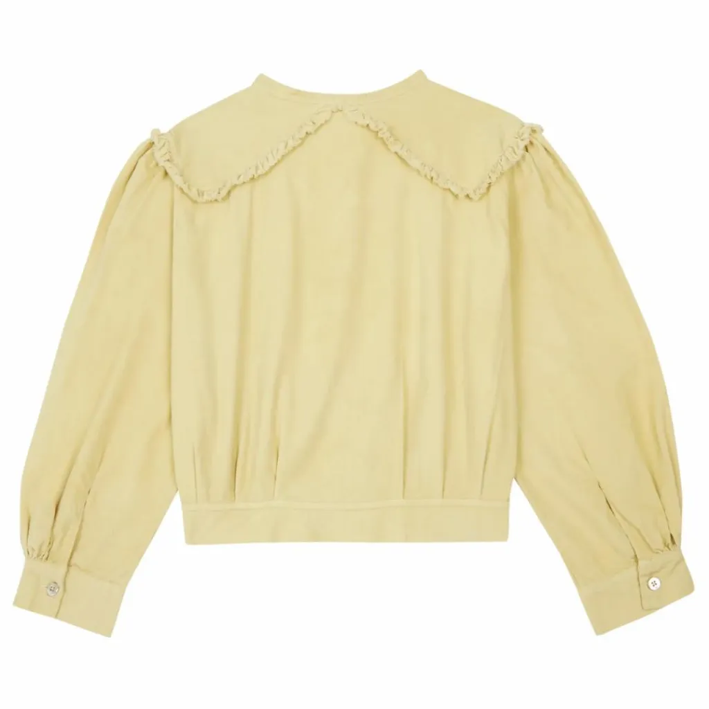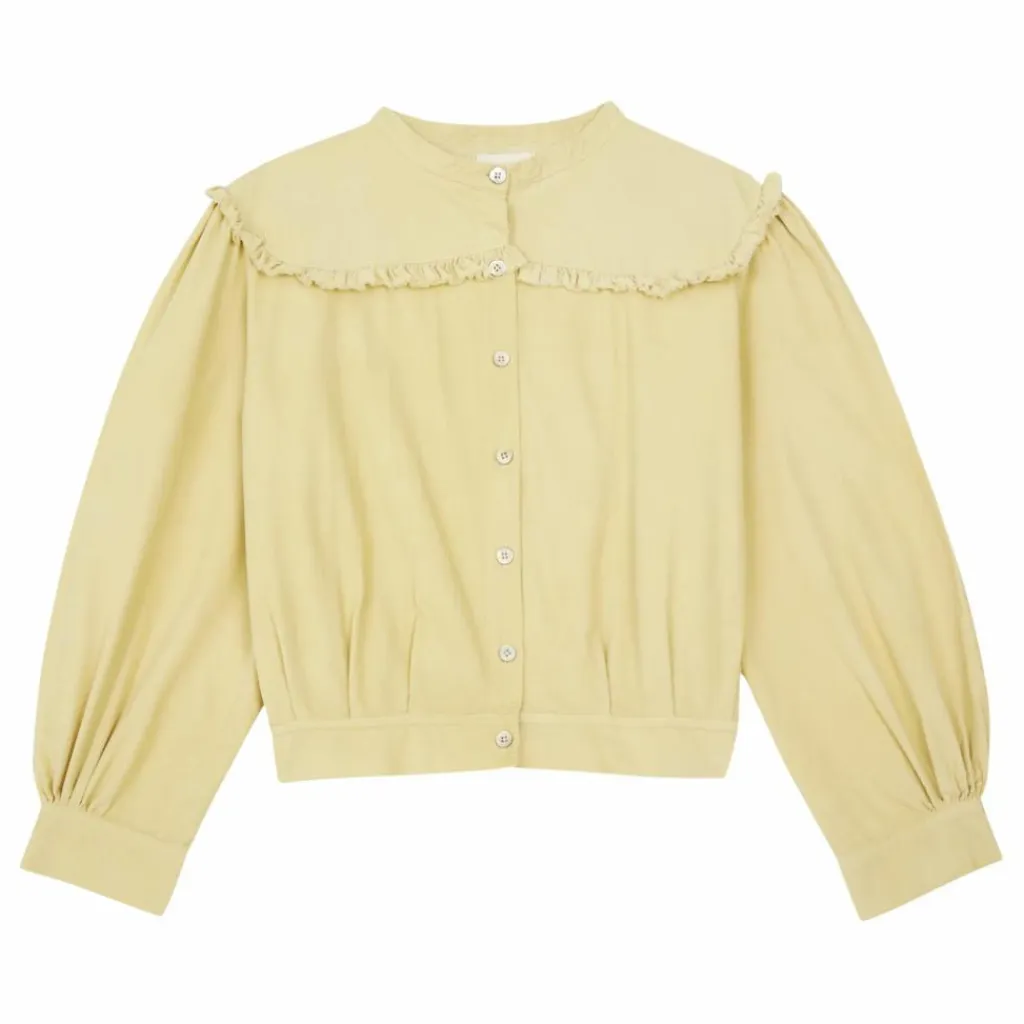 - Empiècement(s) volanté(s), Manches ballons, Poignets boutonnés, Resserré dans le bas, Col mao