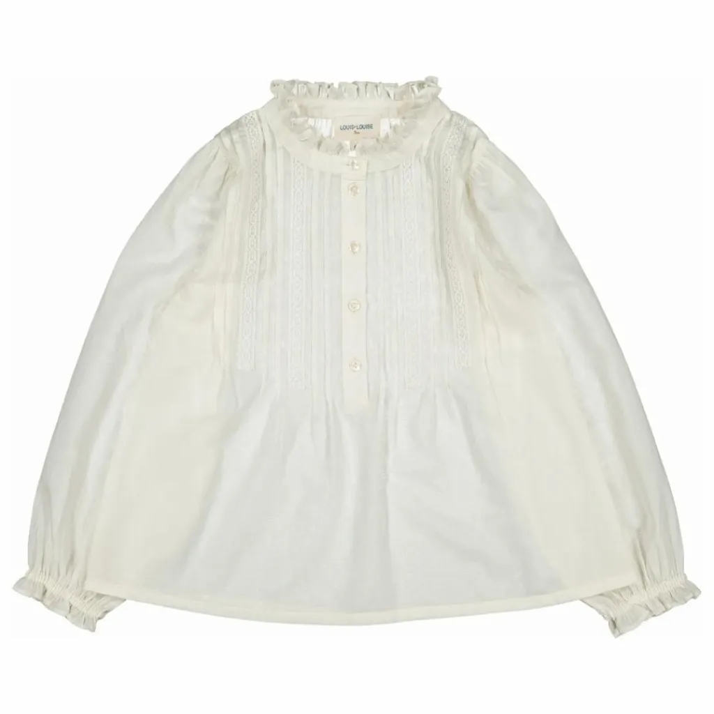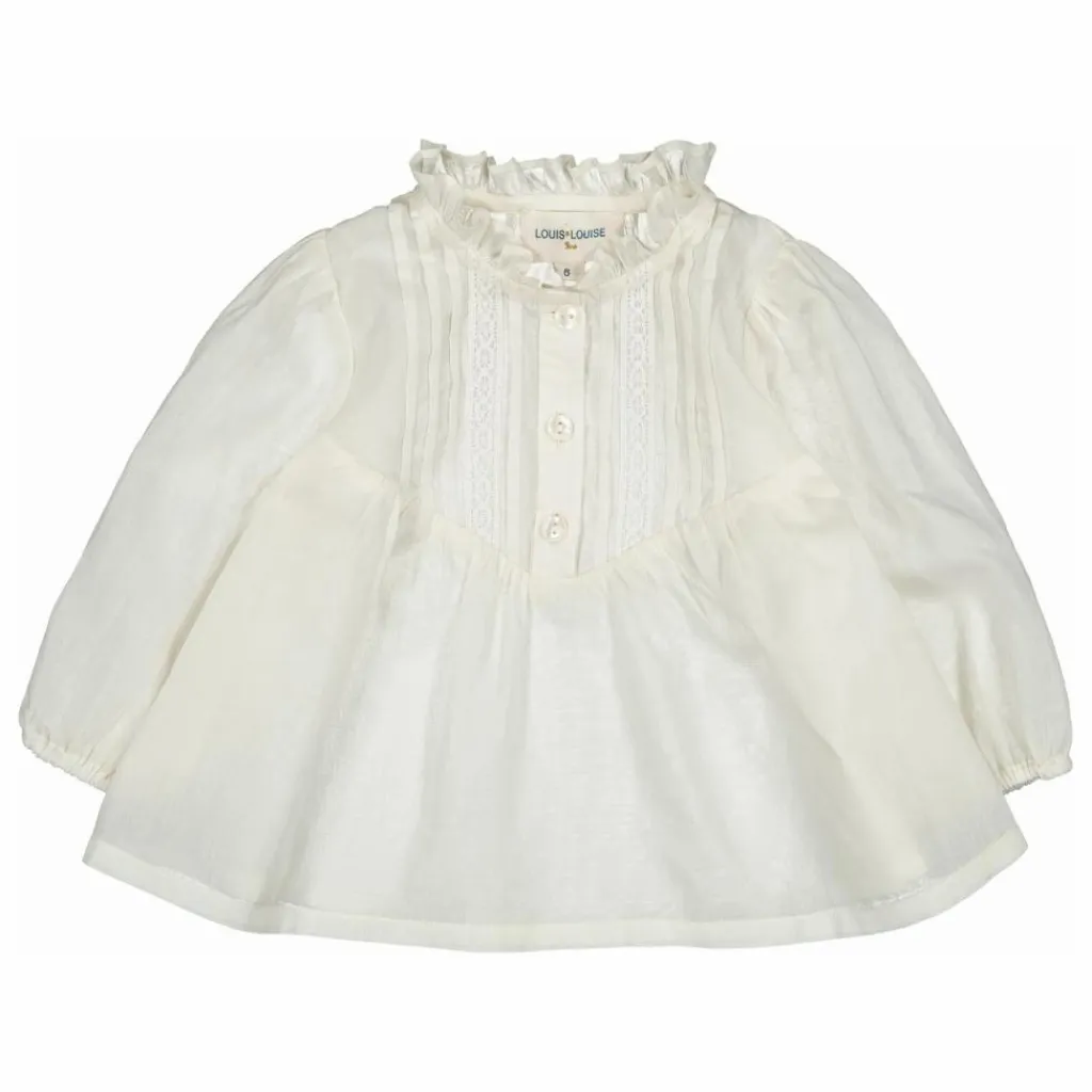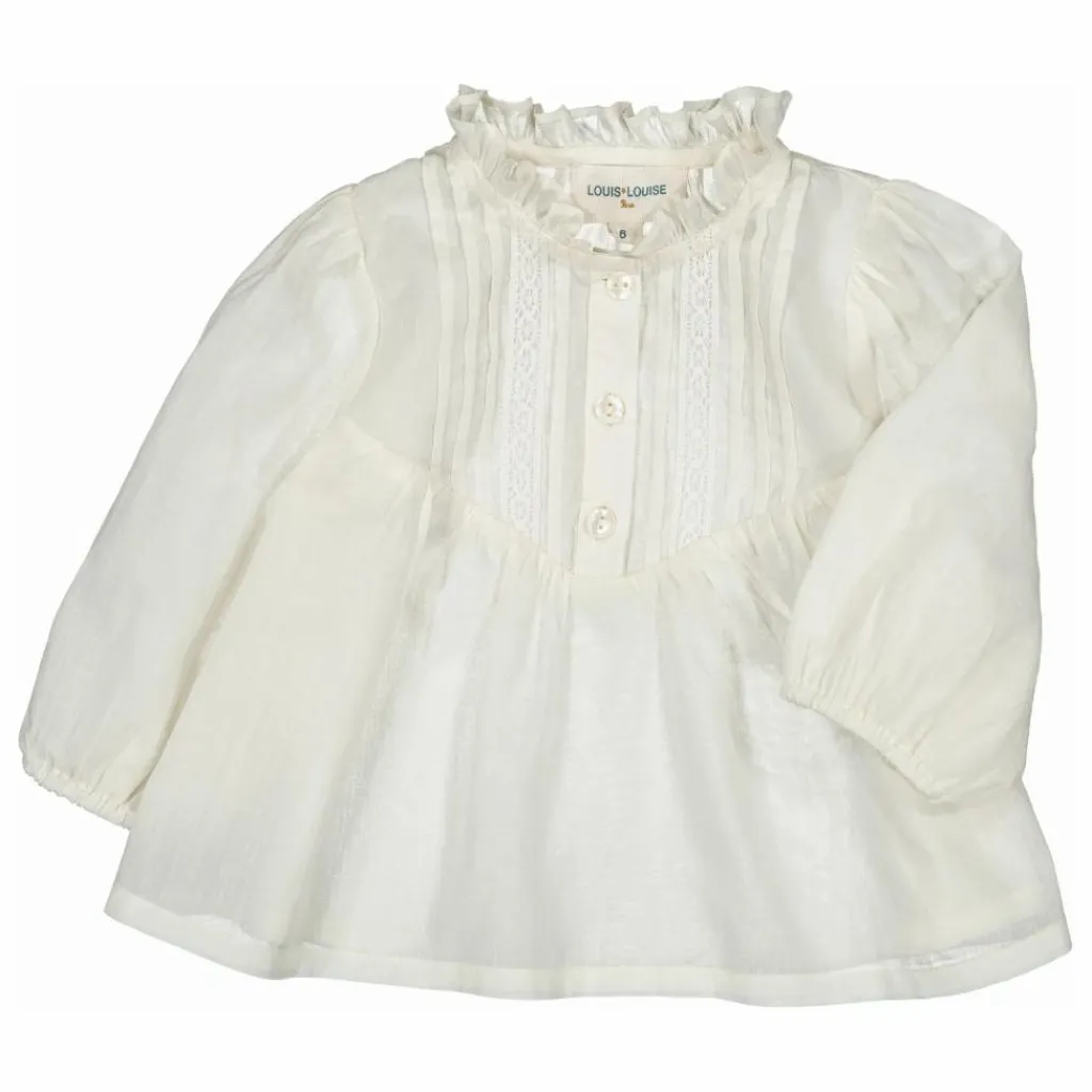 Détails : Col rond, pli plat au plastron, patte de boutonnage poitrine, poignets élastiqués.