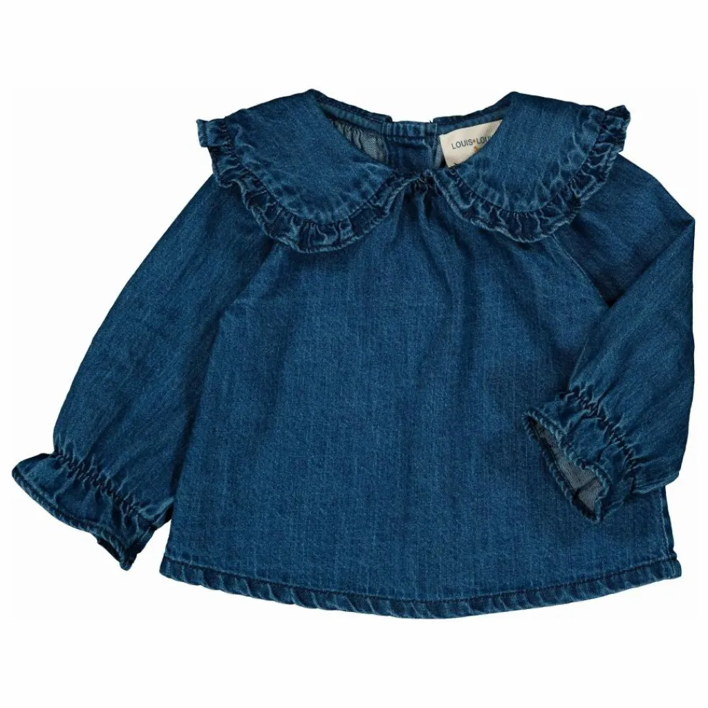 Détails : Col claudine avec croquet, manches longues élastiquées aux poignets, patte de boutonnage au dos.