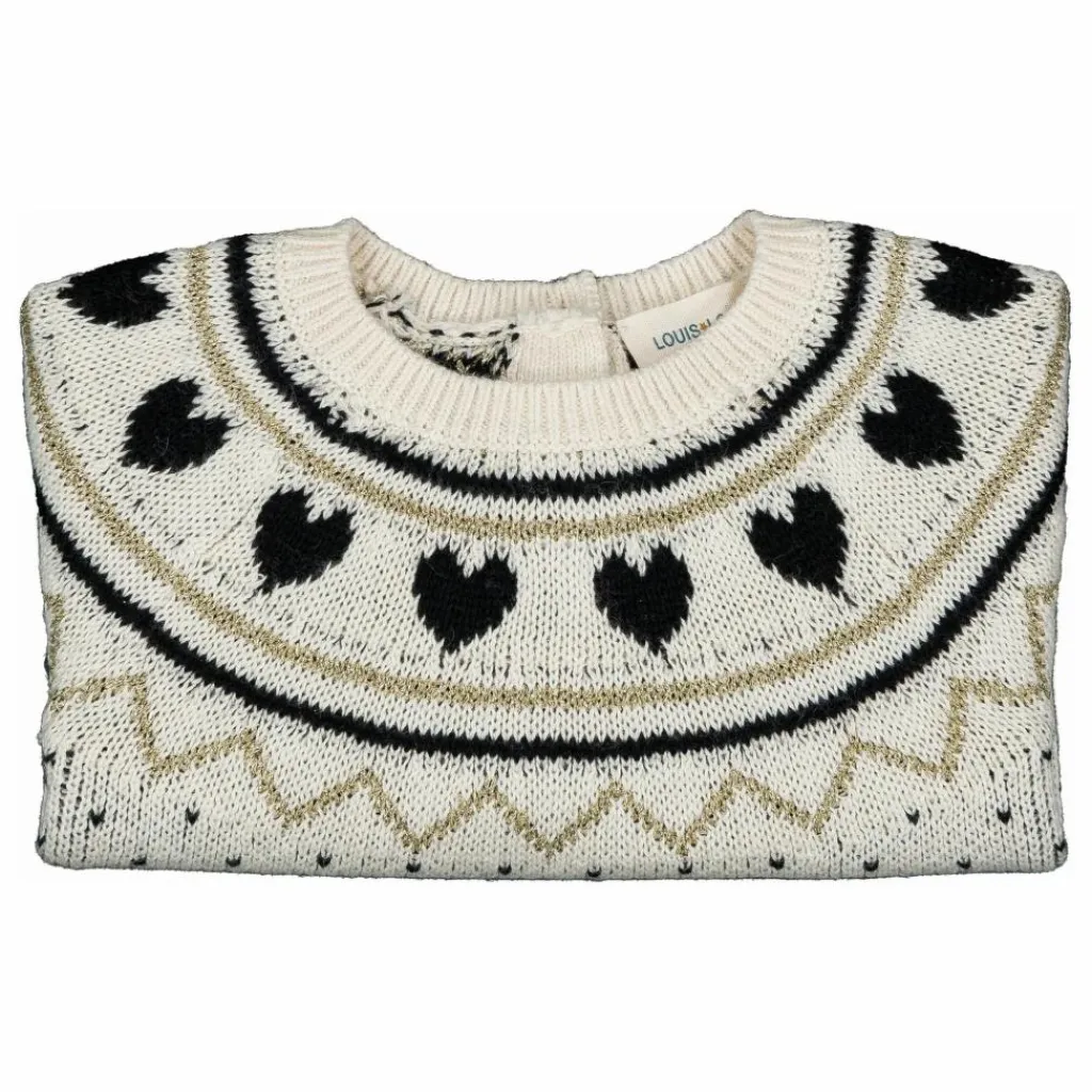 Détails : Manches longues, col rond, jacquard coeur. Lavage en machine conformément aux instructions sur l’étiquette.