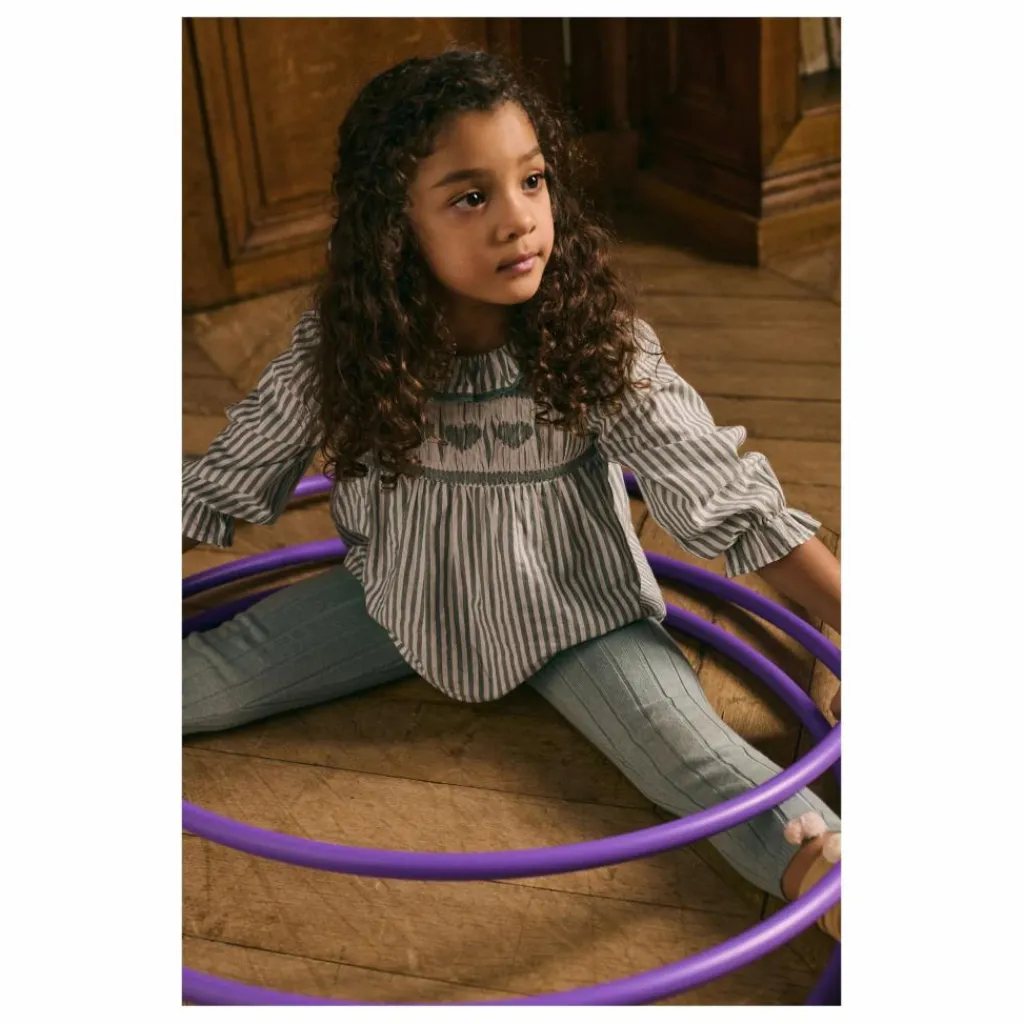 Blouse en coton avec rayures en tissé-teint.