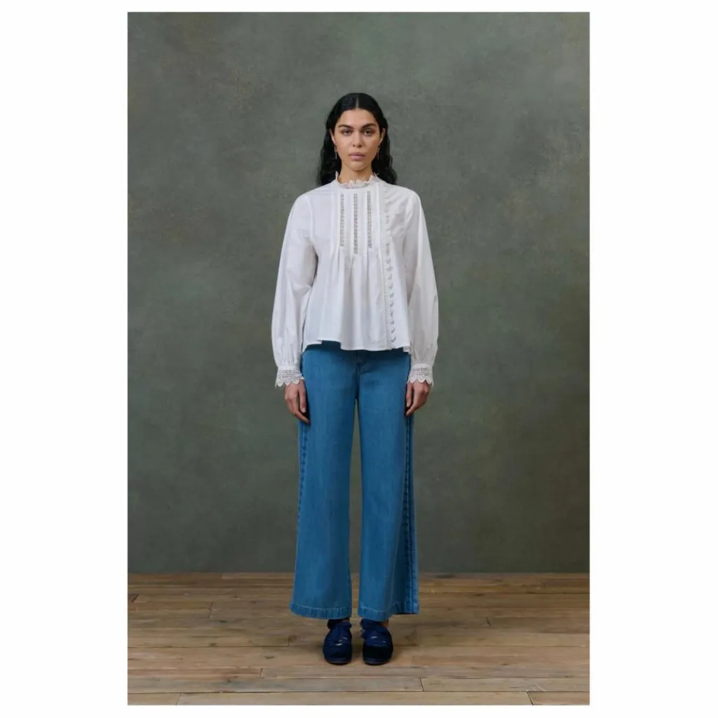 Détails brodés le long de la jambe sur les côtés extérieurs.