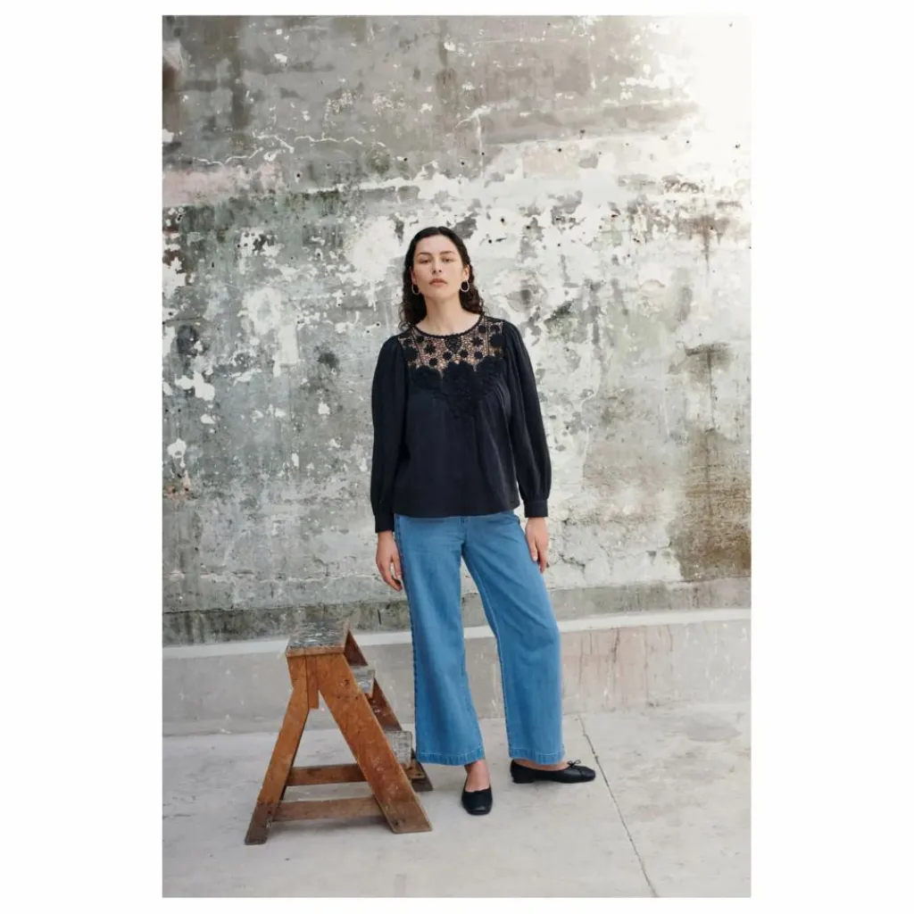 Jean droit en coton et lyocell.