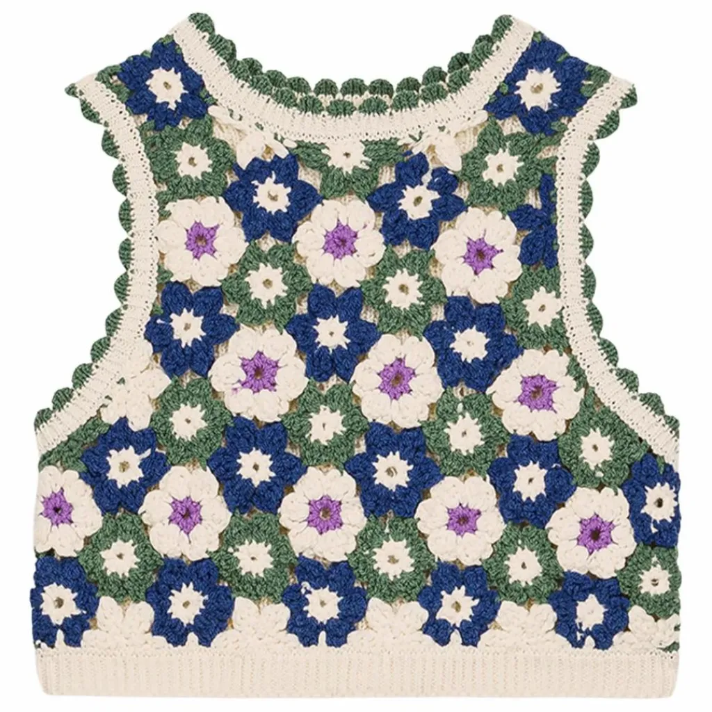 Devant en crochet fait main motif fleuri.