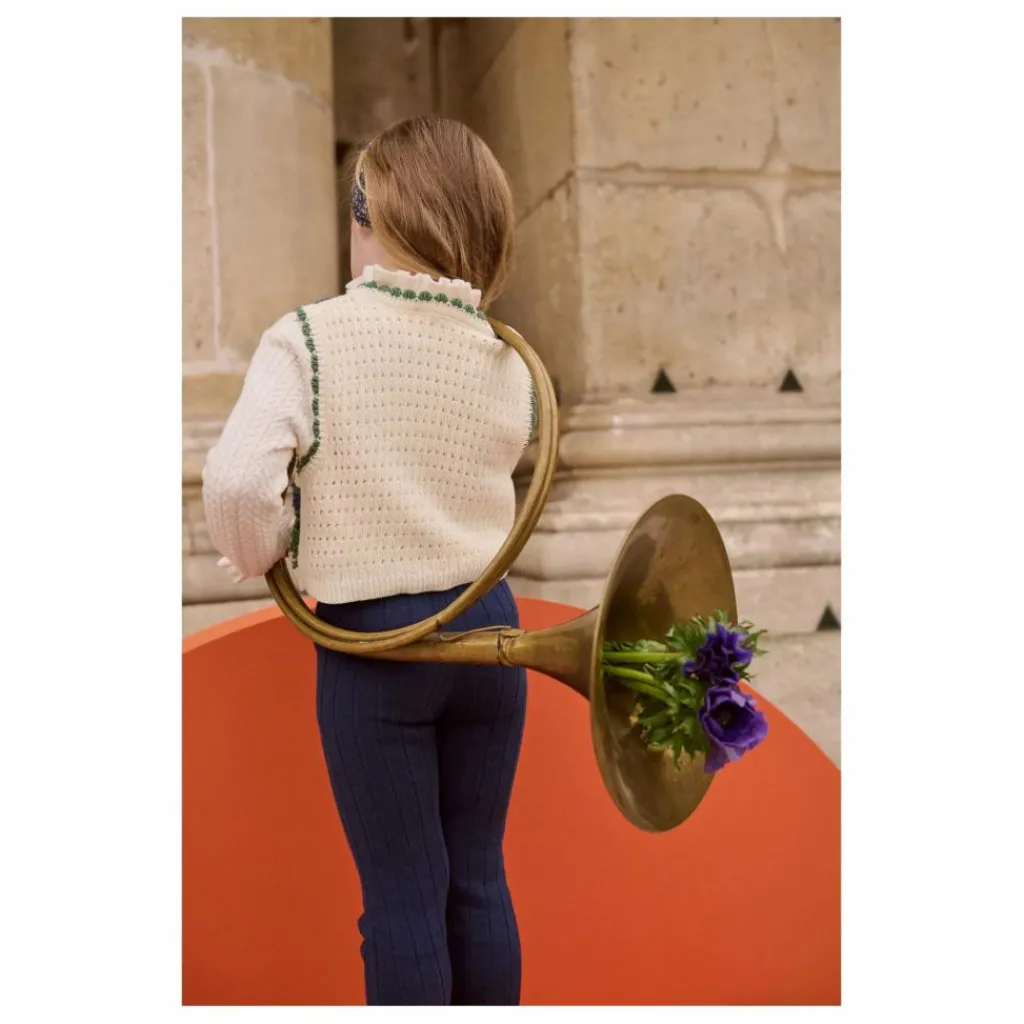 Finitions festonnées crochetées à la main au col et emmanchures.