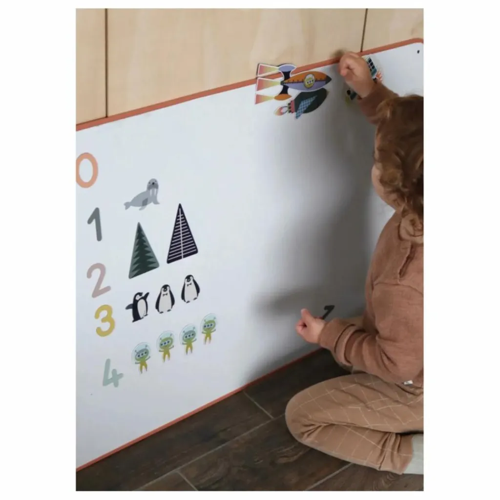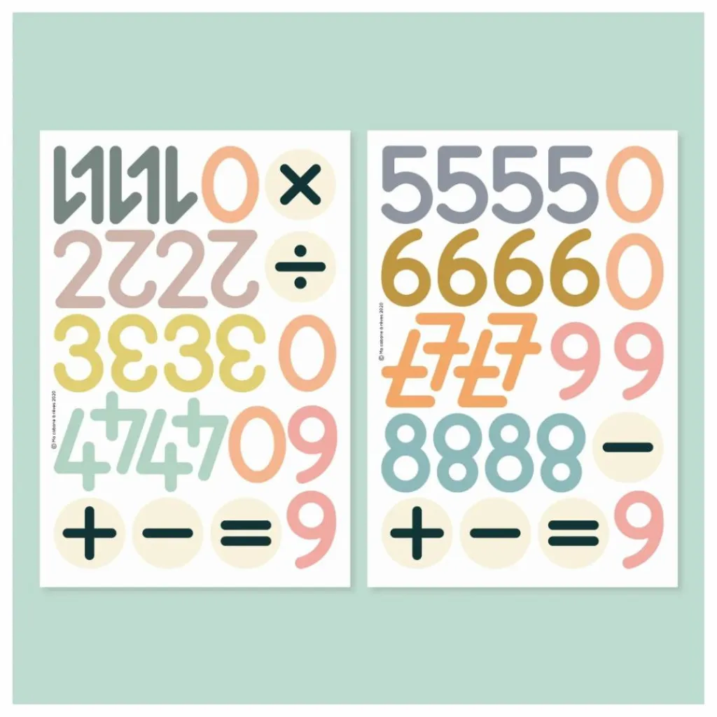 - 52 magnets : 0 (x6), 1 (x5), 2 (x4), 3 (x4), 4 (x4), 5 (x4), 6 (x4), 7 (x4), 8 (x4), 9 (x4), + (x3), – (x3), x (x3), / (x1), = (x2)