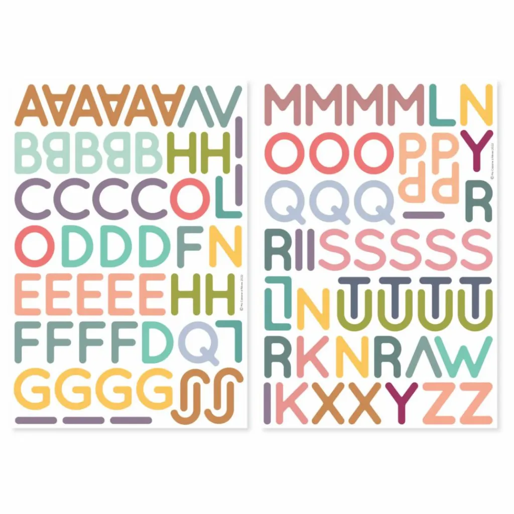 - 105 lettres souples magnétiques (2 planches magnétiques A4 pré-découpées) : A (x6), B (x5), C (x4), D (x4), E (x5), F (x5), G (x4), H (x4), I (x9), J (x4), K (x2), L (x5), M (x4), N (x4), O (x5), P (x4), Q (x4), R (x4), S (x5), T (x4), U (x4), V (x3), W (x1), X (x2), Y (x2), Z (x2), 1 abécédaire au dos du packaging