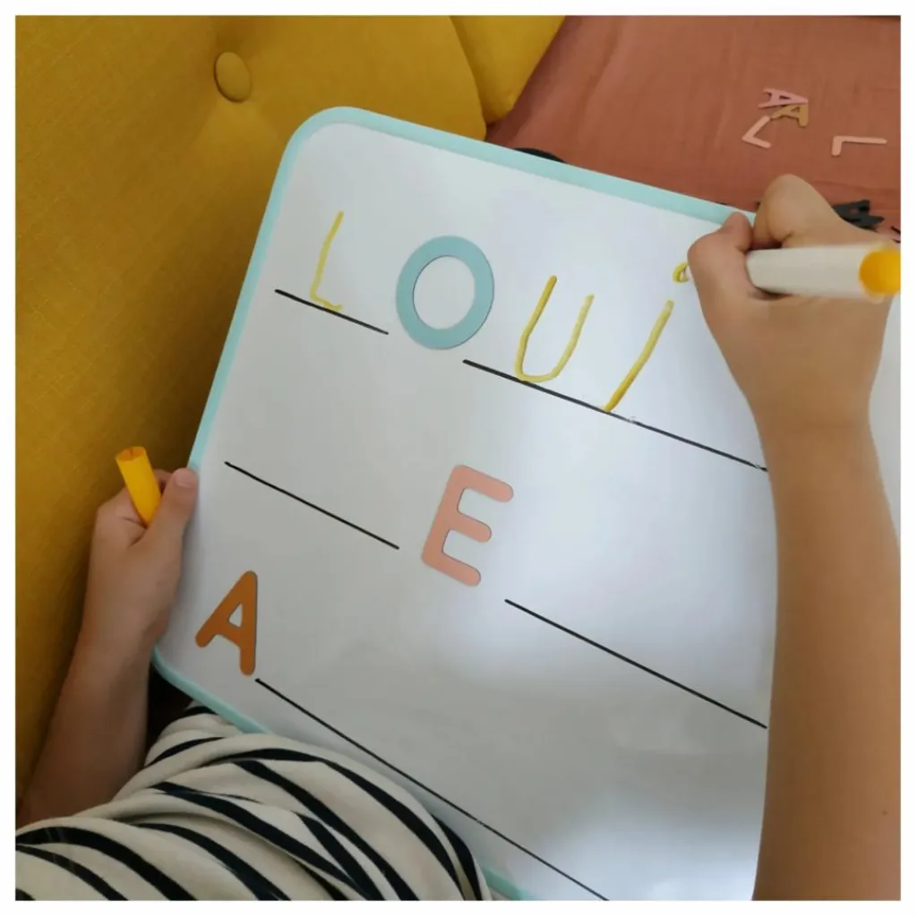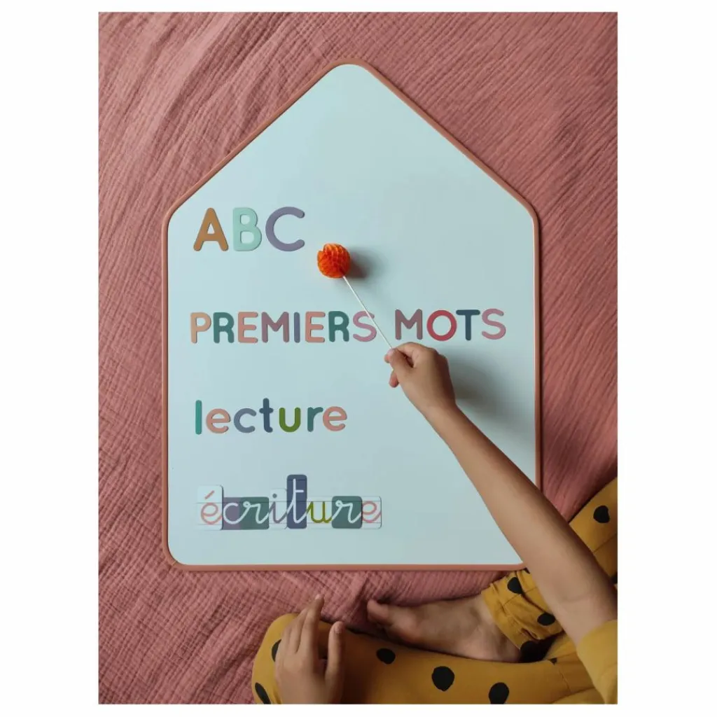 - 53 lettres souples magnétiques (2 planches magnétiques A4 pré-découpées), 1 abécédaire au dos du packaging