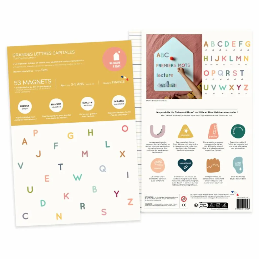 Apprendre l’alphabet tout en s’amusant ! Ma Cabane à Rêves vous propose ses magnets. De grande taille, ils sont facile à manipuler et ludique.