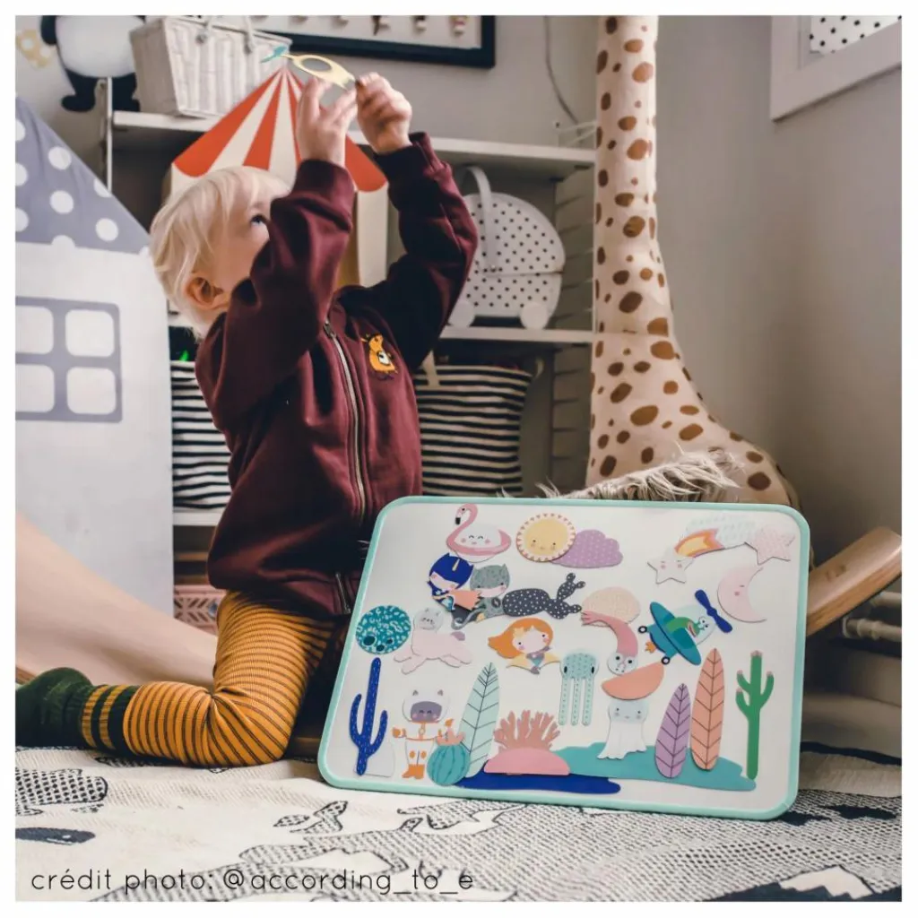 Légère, fine, et incassable, ce tableau magnétique s’emmène partout. Un produit 100% adapté aux enfants !Un tableau éco-responsable conçu et fabriqué en France.