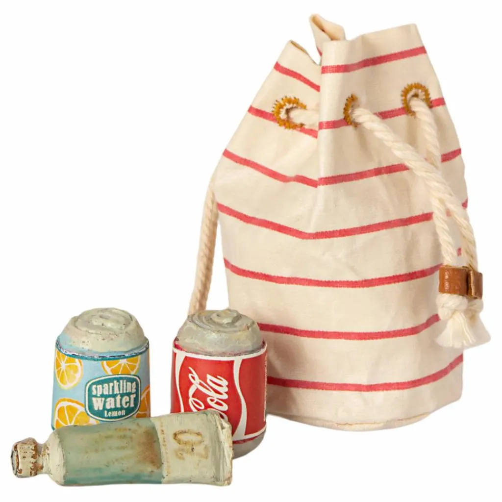 Ce mini sac de plage qui a été spécialement conçu pour les souris Maileg contient tous les indispensables pour passer une agréable journée au soleil.