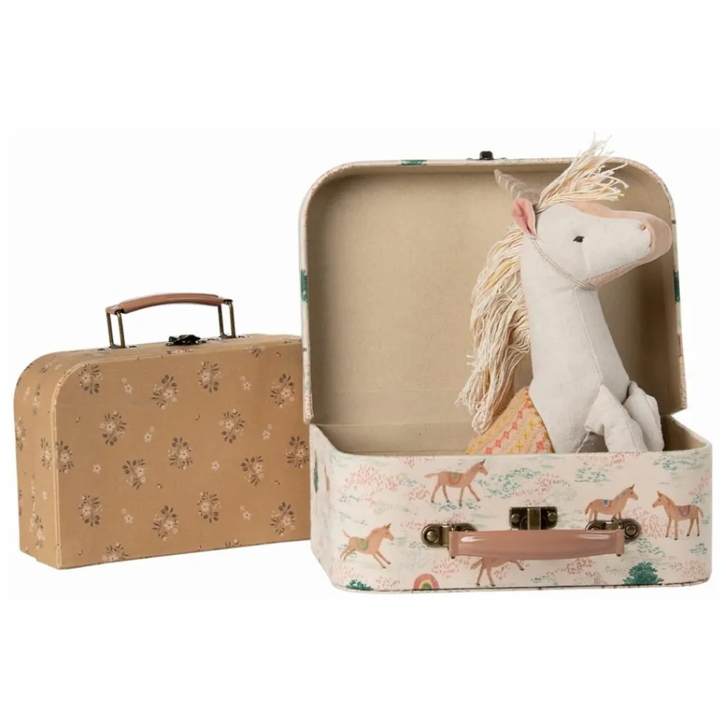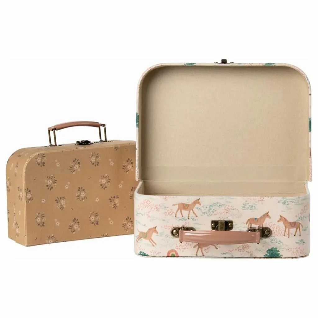 - Ensemble de valises idéal pour ranger vos objets préférés. Chaque valise est recouverte d’un tissu Maileg unique et possède des poignées métalliques colorées. Ce lot de 2 pièces est parfait pour à la fois ranger et transporter vos jouets préférés.