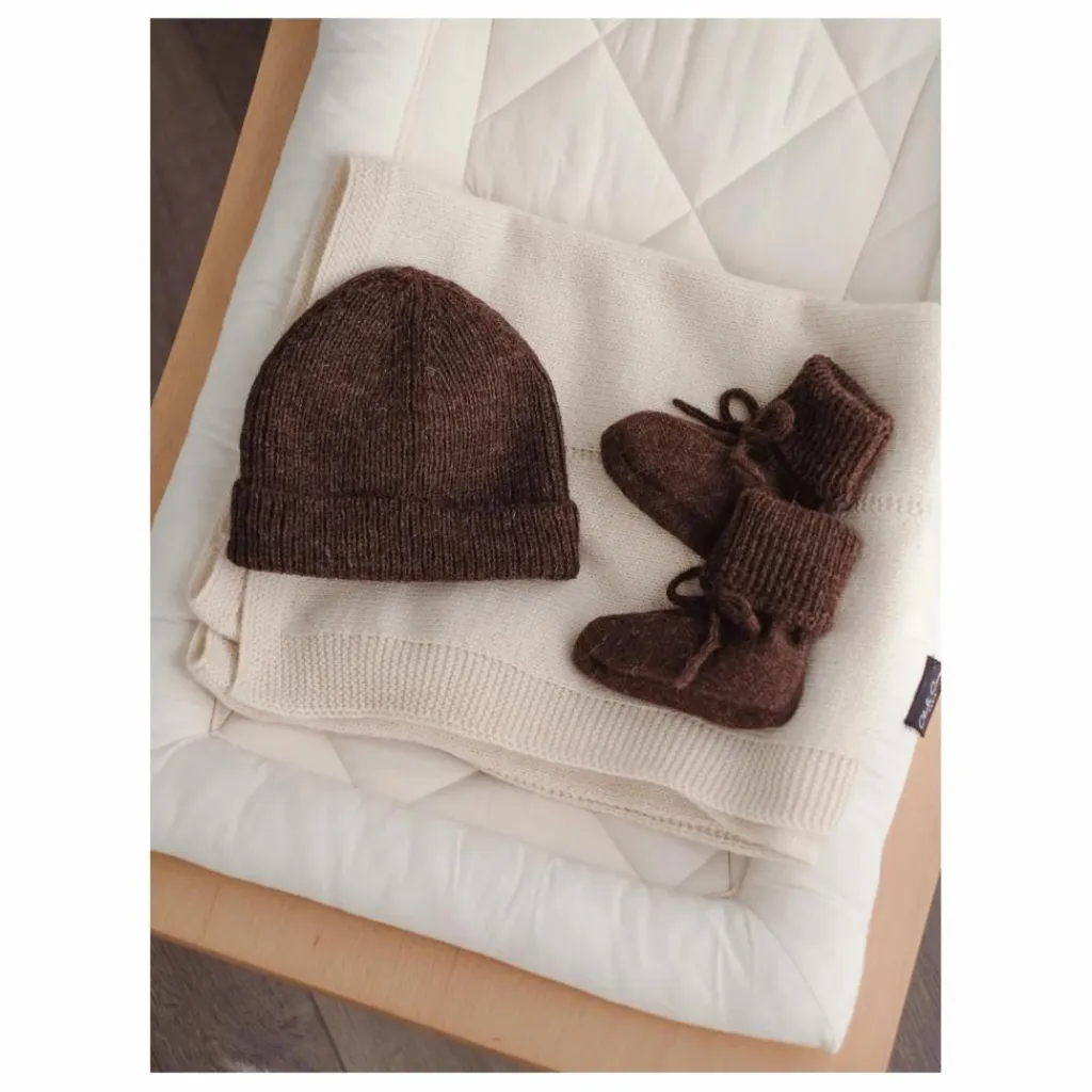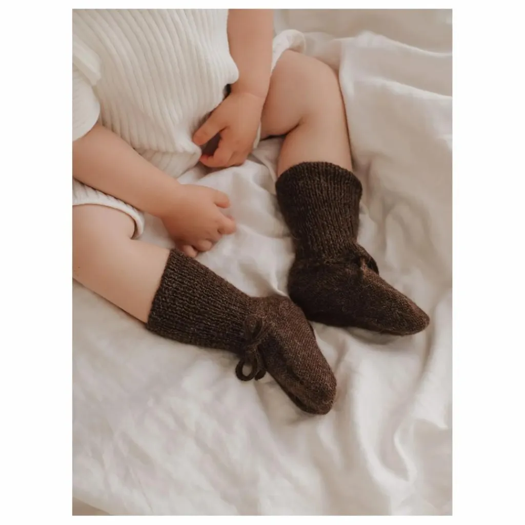 Ces chaussons ultra-doux sont un incontournable intemporel de la garde-robe de bébé. Confectionnés à la main dans les Andes boliviennes, ils sont réalisés avec la laine de baby alpaga la plus fine, renommée pour sa douceur exceptionnelle et sa qualité supérieure. Grâce à leur petit lacet à la cheville, ces chaussons restent bien en place et peuvent se porter dépliés pour offrir une chaleur supplémentaire lors des journées les plus fraîches. Naturellement hypoallergénique et antibactérienne, la laine de baby alpaga est idéale pour la peau délicate des bébés, aidant leur corps à maintenir une température optimale, en été comme en hiver. Associés à nos bonnets assortis, ils forment un cadeau de naissance à la fois pratique et raffiné.