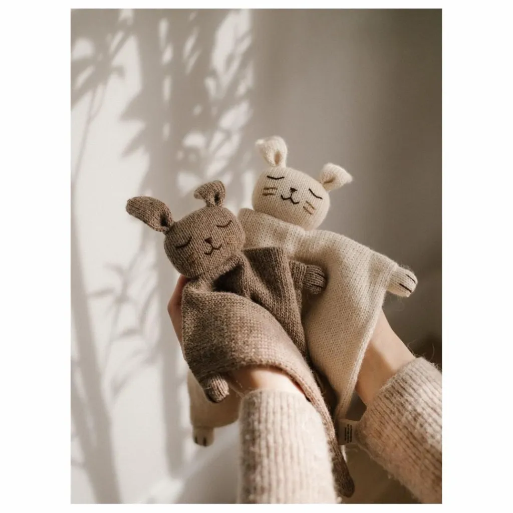 - Ce doudou est entièrement tricoté à la main dans un atelier équitable en Bolivie. Sa confection minutieuse participe à préserver des savoir-faire et des techniques respectueuses des humains et de la nature. Il est réalisé en pure laine baby alpaga, une matière antibactérienne très douce, particulièrement adaptée aux peaux sensibles.