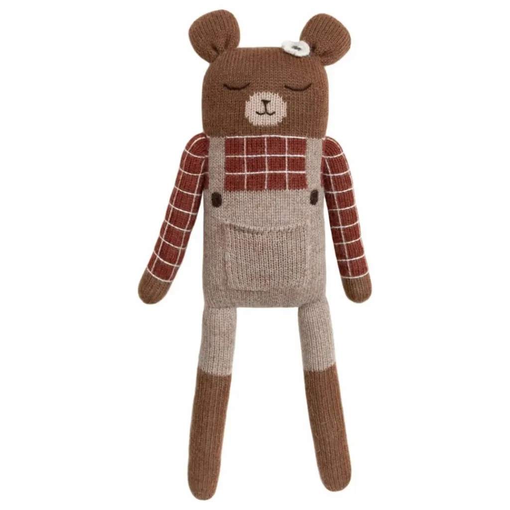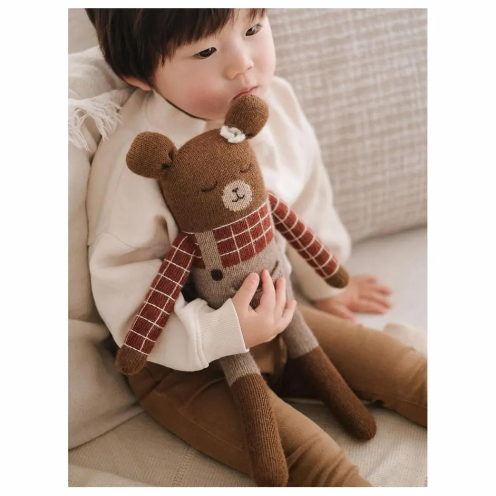 - Ce doudou est entièrement tricoté à la main dans un atelier équitable en Bolivie. Sa confection minutieuse participe à préserver des savoir-faire et des techniques respectueuses des humains et de la nature. Il est réalisé en pure laine baby alpaga, une matière antibactérienne très douce, particulièrement adaptée aux peaux sensibles.